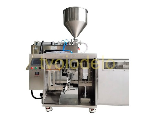 Этот упаковочный автомат предназначен для упаковки в дой-паки различных продуктов, таких как сметана, йогурт, мед, сгущённое молоко, джемы, варенье, кетчуп, томатная паста, аджика, майонез, крем, мазь, шампунь, гель и т.д.