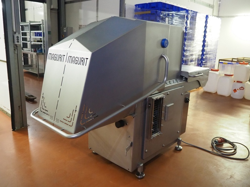 Блокорезка Magurit 555 режет замороженные до -25С, твердые и вязкие продукты с точностью до миллиметра на полоски или кубики с четкими гранями. Кроме того, эта блокорезка подходит и для предварительного измельчения. Толщина нарезки плавно регулируется. Встроенный в нижний держатель датчик высоты блоков автоматически регулирует ход резки в зависимости от высоты блоков, обеспечивая тем самым высочайший уровень эффективности резки, который не может предложить ни один другой станок для резки замороженных блоков. Защитная крышка полностью открывается, а все детали, соприкасающиеся с продуктом, отшлифованы и отполированы. Поэтому санобработка режущего отсека производится очень быстро.