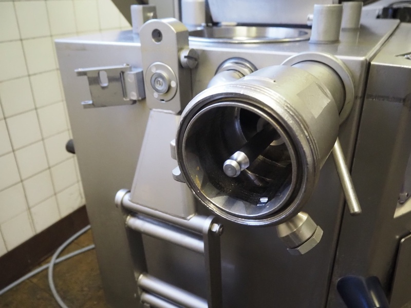 Линия, состоящая из вакуумного шприца Handtmann VF 628 с подъемником для 200-литровых контейнеров для мяса и устройства порционирования мясного фарша Handtmann GMD 99-2. Вакуумный шприц Handtmann VF 628 специально создан для промышленных предприятий с высочайшими требованиями. Он создает давление набивки 72 бар и отличается необыкновенно высокой производительностью. Производительность набивки до 700 порций в минут вакуумного шприца VF 628 соответствует самым высоким требованиям. GMD 99-2 в комбинации с VF 628 может использоваться как синхронизированное устройство для порционирования свободных экструдированных масс продукта. Потоки заполнения, выходящие непосредственно из трубок или других экструзионных насадок, разделяются на отдельные порции требуемого размера. Примером могут служить чевапчичи, котлетные бургеры, фруктовая паста, марципан.