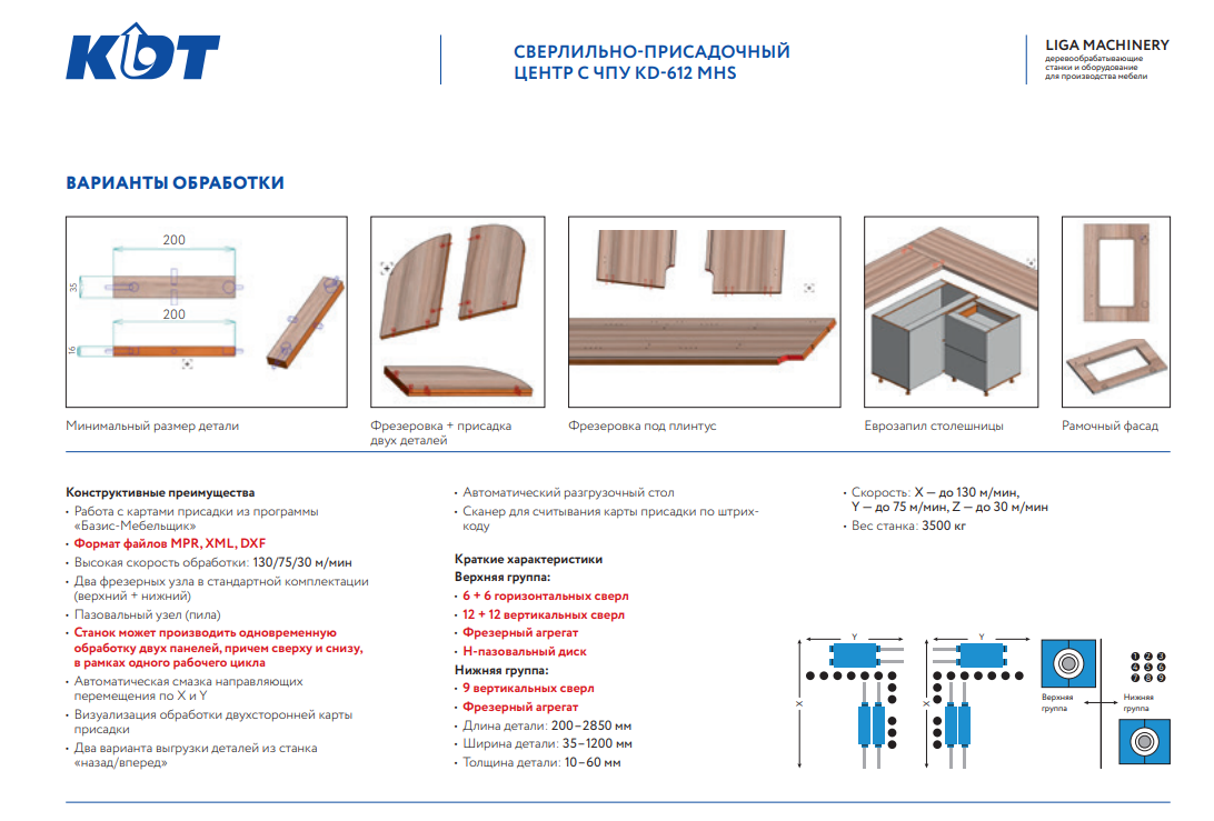 ✅Предназначен для высокоточного сверления сквозных и глухих отверстий в торцах и плоскостях мебельных щитов, что позволяет производить обработку любых карт присадки за один проход детали с 6 сторон.