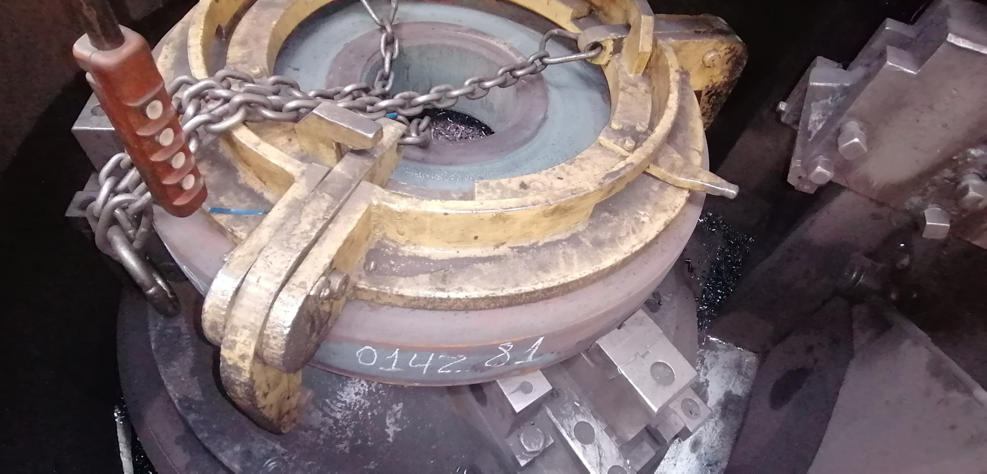 Станок токарно-карусельный двухстоечный специальный молели KC355 (noсле модернизации) предназначен для обработки заготовки детали- зубчатых колес, со стороны малой ступицы (ЖД колесных пар)