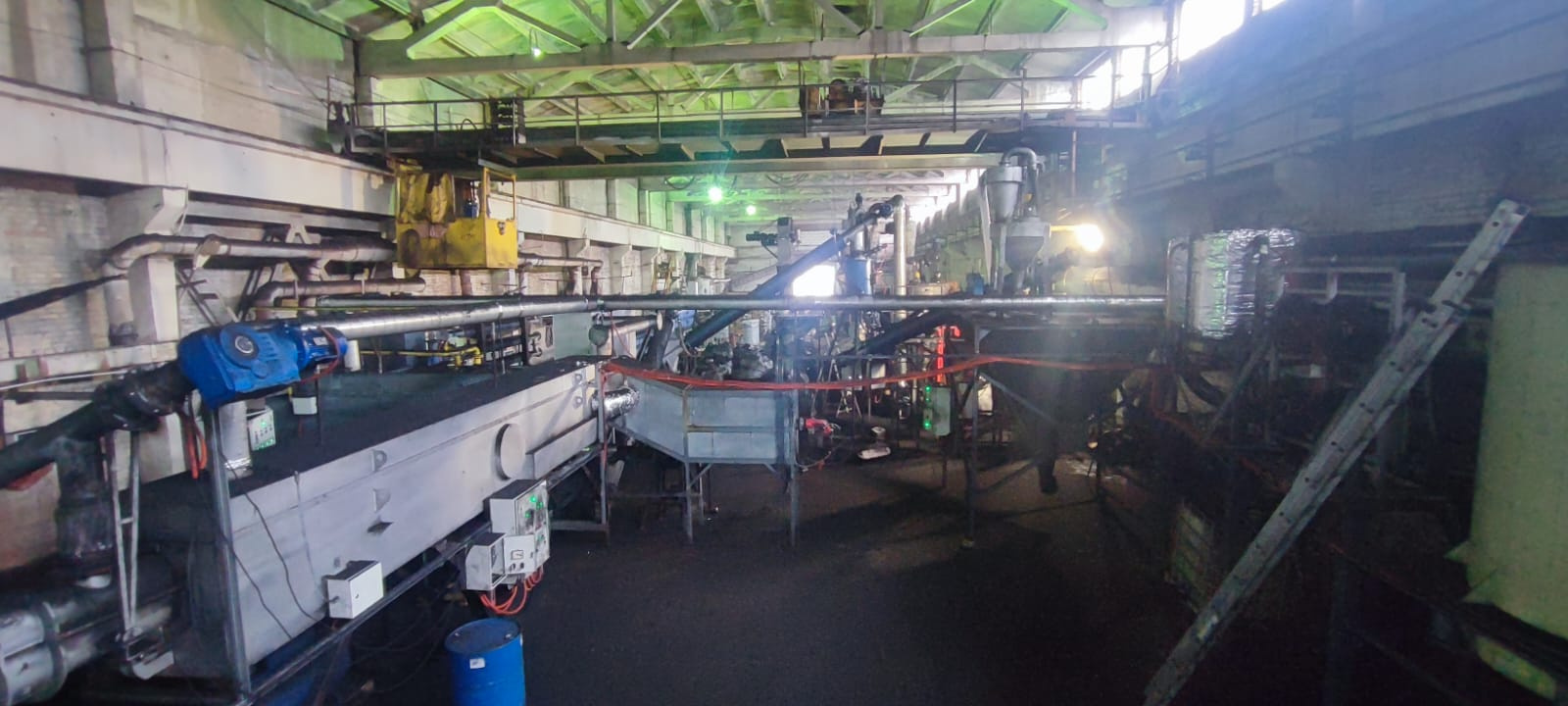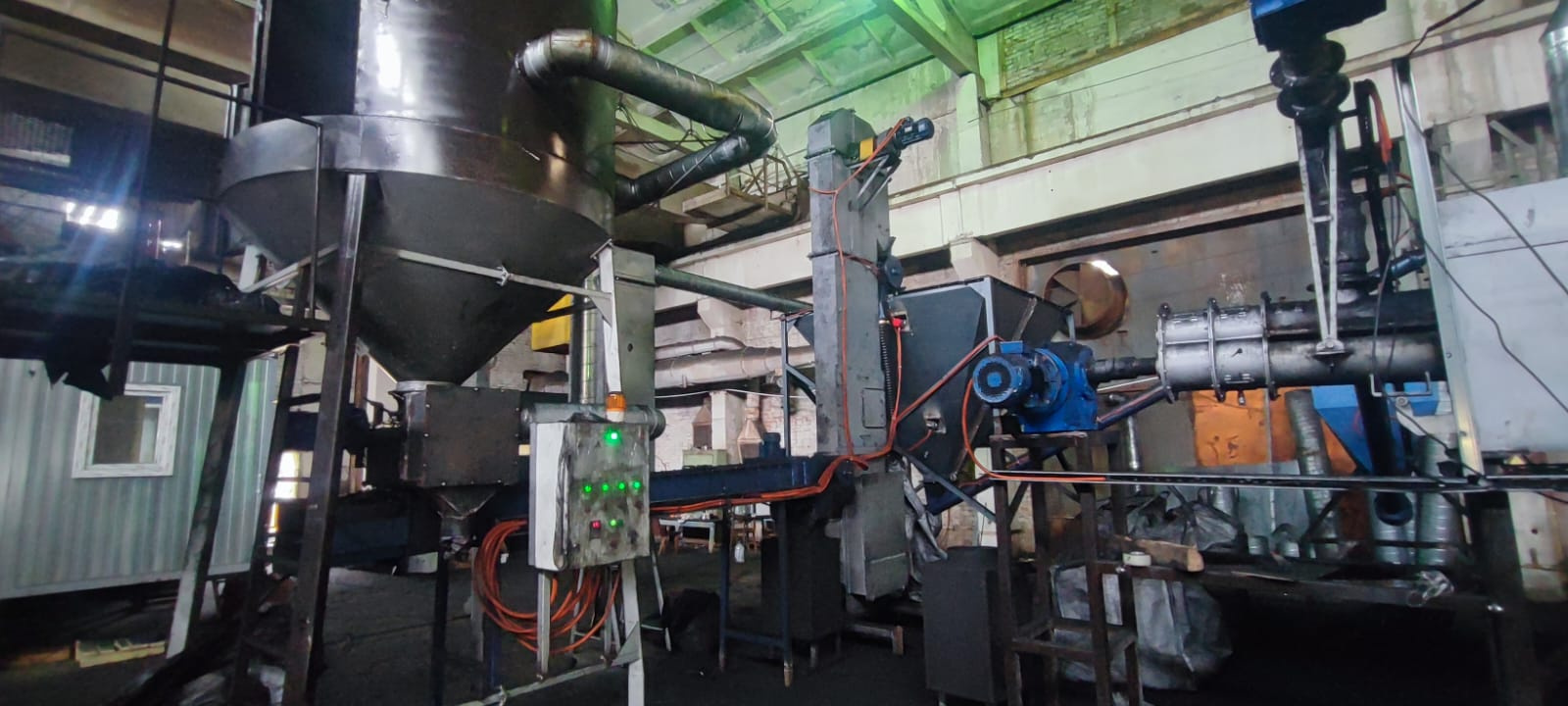 Производственная линия по регенерации углеродного остатка после пиролиза шин в технический углерод коммерческого назначения.