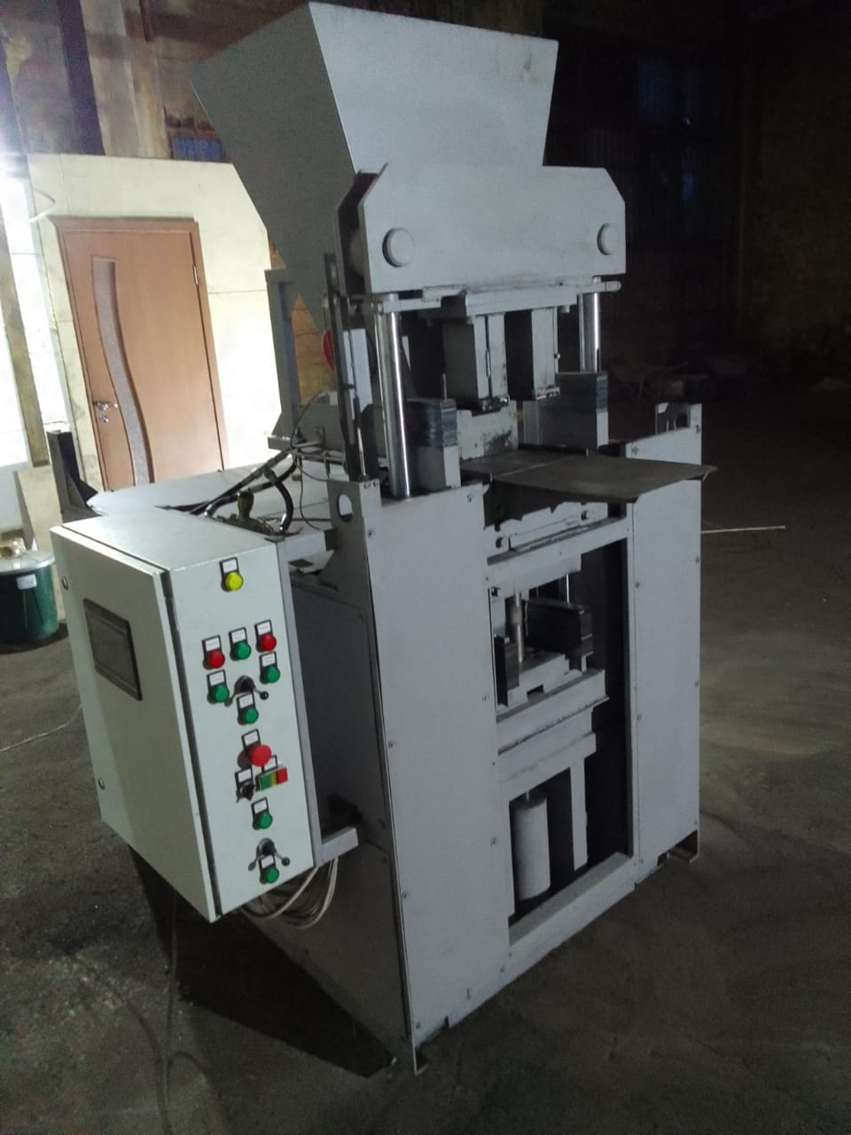 Количество изделий за один цикл - 2. Матрица на 2 брикета прямоугольной формы. Высота изделия изменяется. Электрический двигатель 11 кВт.