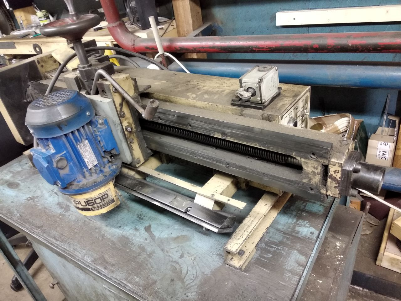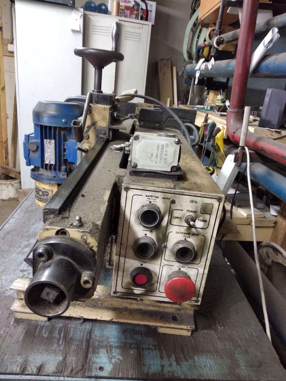 Заточной станок для плоских строгальных ножей в рабочем состоянии.