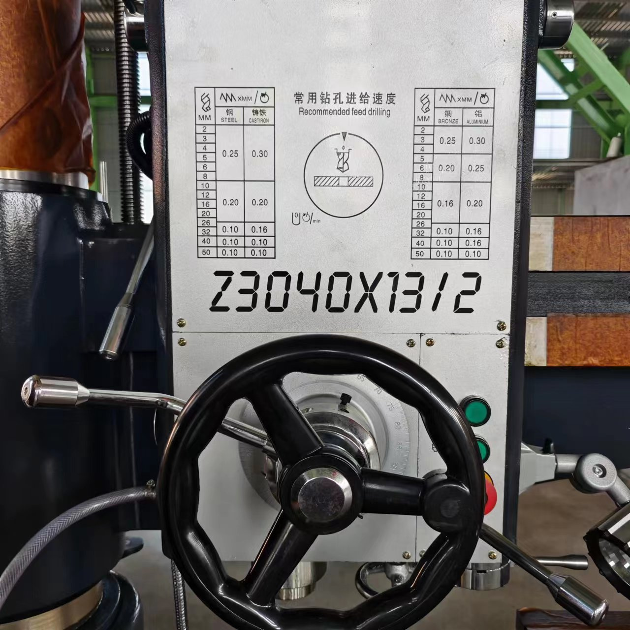 Максимальный диаметр сверления мм 40 Расстояние от оси шпинделя до колонны max .мм 1200 Расстояние от оси шпинделя до колонны min.мм 330 Горизонтальный ход шпиндельной коробки 870 Расстояние от кончика шпинделя до рабочего основания max.мм 1000 Расстояние от кончика шпинделя до рабочего основания min.мм 260 Перемещение шпинделя. мм 270 Конусность шпинделя 4 Скорость вращения шпинделя . об.мин. 75-1220 Ступени скорости вращения шпинделя 6 Диапазон подачи шпинделя 0.1-0.25 Этапы подачи шпинделя 3 Размер рабочего стола мм 400*560 Мощность главного двигателя квт 2.2 Вес машины кг 1600 Размер машины мм 1800*760*2100
