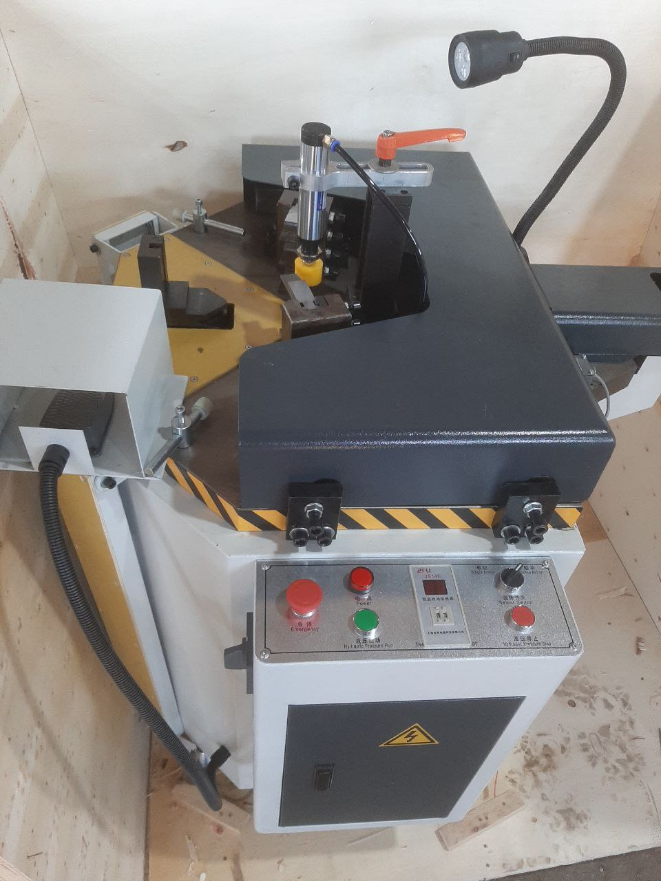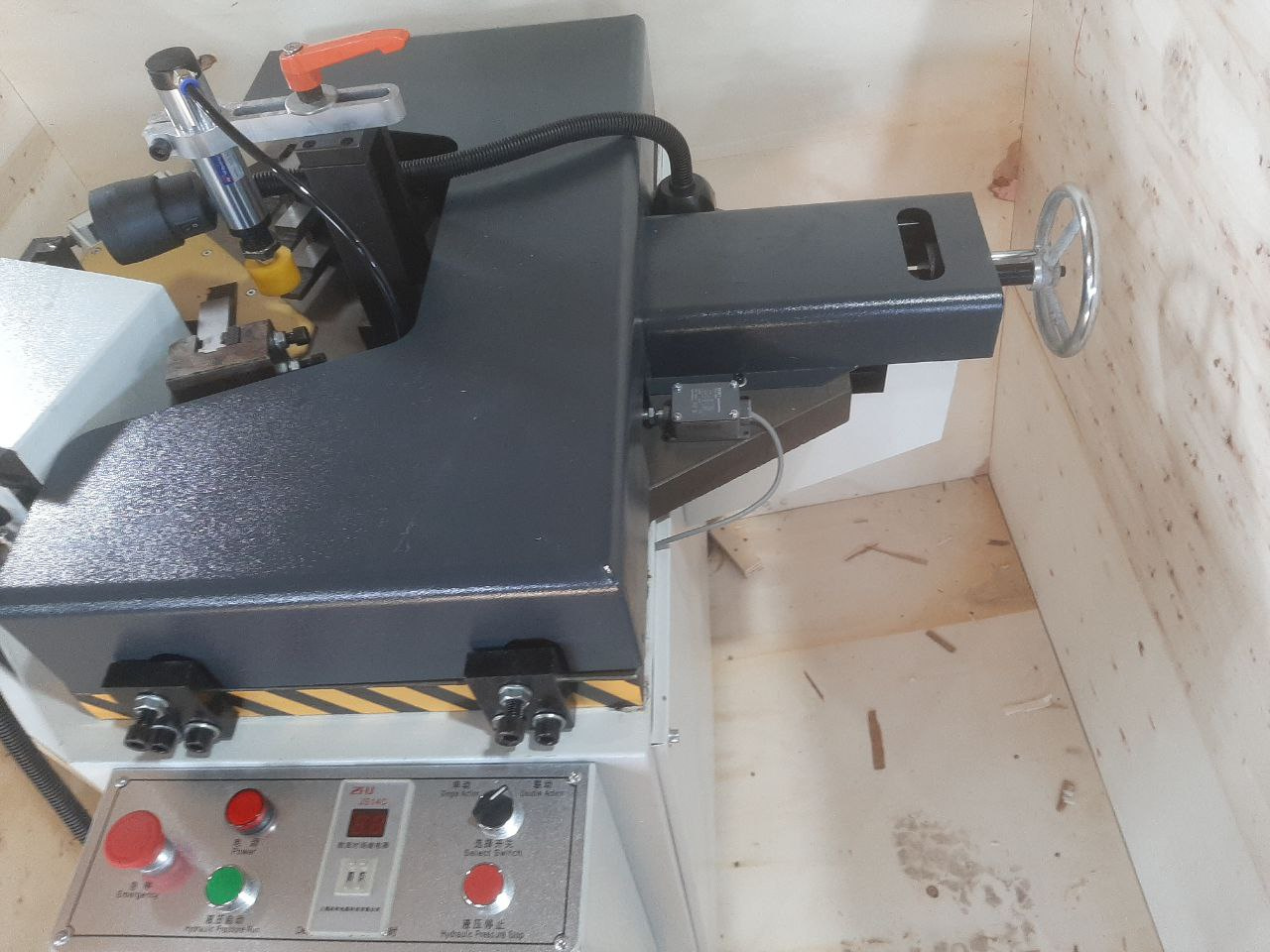 Углообжимной станок предназначен для производства окон. Пресс используют для сборки рам и створок из алюминиевых профилей. Пресс гидравлический, что обеспечивает плавный ход ножей.
