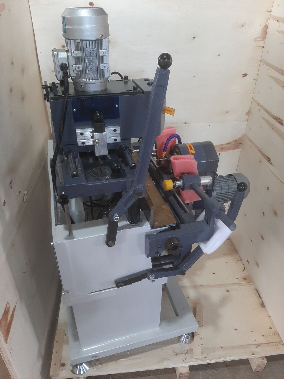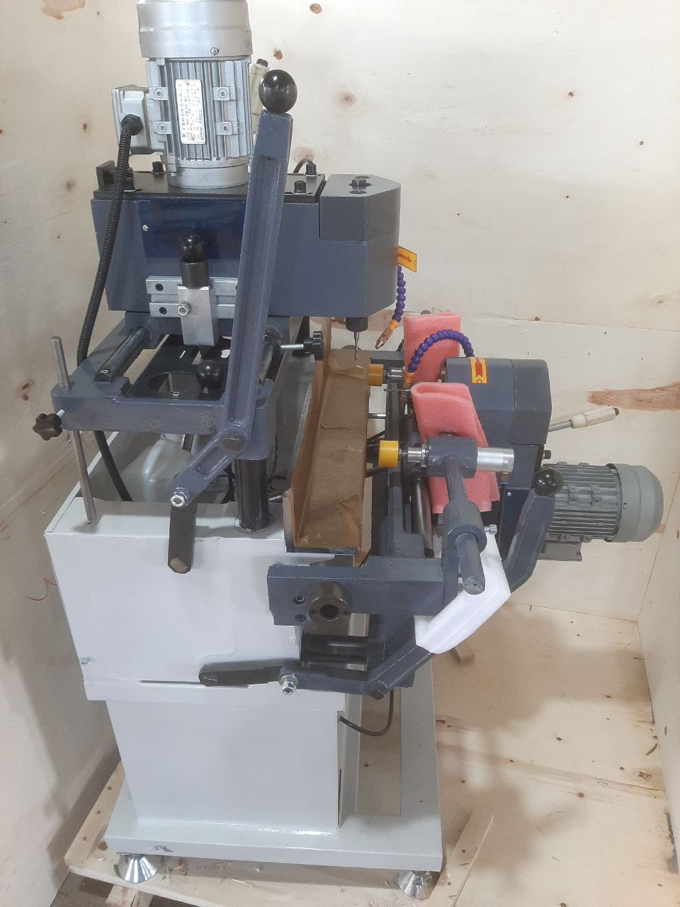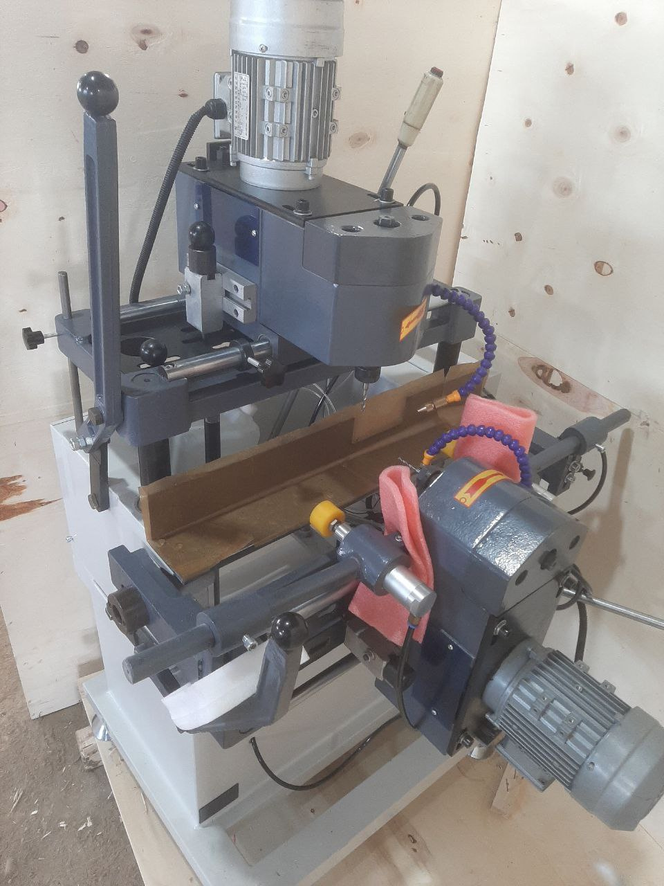 Копировально-фрезерный станок (новый)2 головый предназначен для фрезерования технологических отверстий в алюминиевых профилях под замки, ручки, шпингалеты и водоотводящие каналы и снабжён системой подачи смазочно-охлаждающей жидкости. Используется для производства алюминиевых окон. Специальные фиксаторы позволяют фрезеровать разные каналы независимо от шаблона. Копировально - фрезерный станок имеет пневматические прижимы профиля и пистолет для сдува стружки. В наличии на складе.