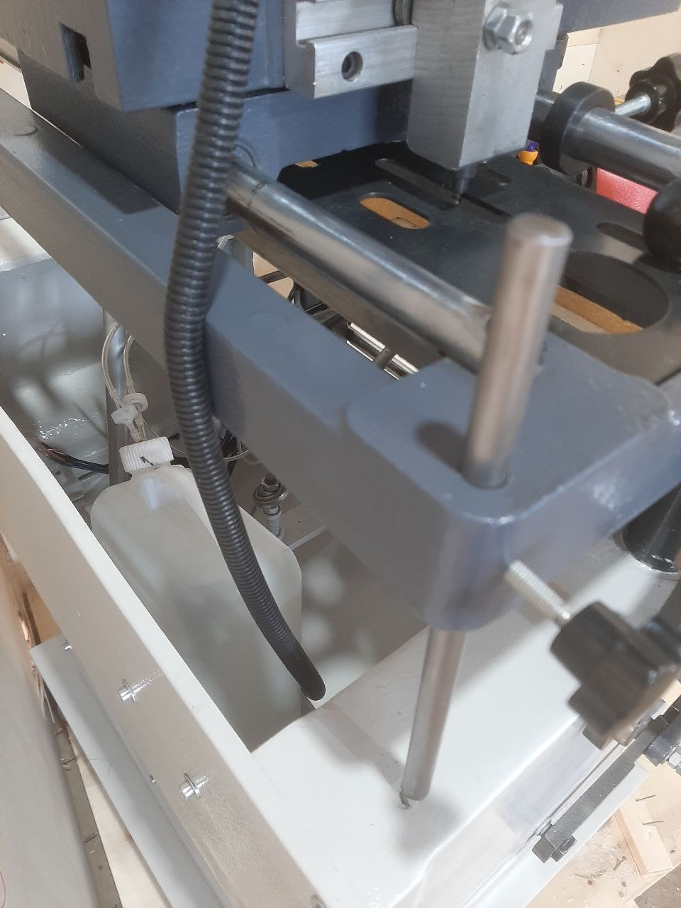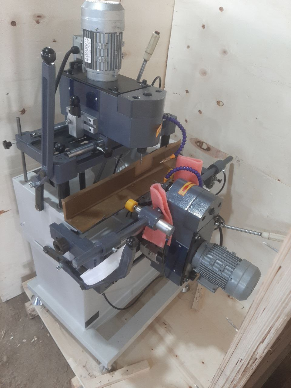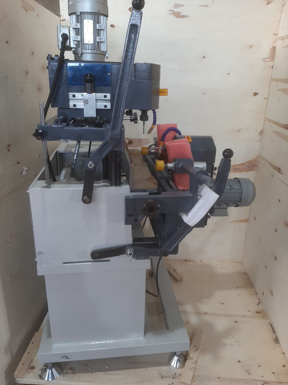 Копировально-фрезерный станок (новый)2 головый предназначен для фрезерования технологических отверстий в алюминиевых профилях под замки, ручки, шпингалеты и водоотводящие каналы и снабжён системой подачи смазочно-охлаждающей жидкости. Используется для производства алюминиевых окон. Специальные фиксаторы позволяют фрезеровать разные каналы независимо от шаблона. Копировально - фрезерный станок имеет пневматические прижимы профиля и пистолет для сдува стружки. В наличии на складе.