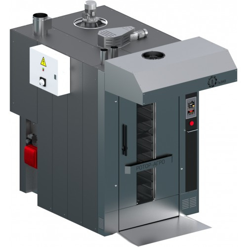 РОТОР-АГРО 202Д – это второе поколение ротационных печей представленной марки. Хлебопекарные печи РОТОР-АГРО 202Д отличаются высоким качеством европейского уровня, просты в обслуживании и эксплуатации. Печь предназначена выпечки разнообразных кондитерских и хлебобулочных изделий. Завоевала отличную репутацию, как надёжный агрегат на многих хлебозаводах и хлебопекарнях. Ротационная печь РОТОР-АГРО 202Д имеет модульную конструкцию, что значительно сокращает срок сборки и время ввода в эксплуатацию. Дверь достаточно прочная, с дополнительными элементами жесткости, двойным стеклом с естественной продувкой и крепкими петлями, которые можно регулировать. Теплоизоляция отличная. В печи РОТОР-АГРО 202Д энергоносителем выступает жидкое топливо, среднее потребление которого, составляет 4,6 литров, в час. В свою очередь, такое потребление топлива, обеспечивает производство, к примеру, столового батона, 138,9 голограмм в час. Пекарная камера изготовлена из нержавеющей стали высокого качества. Обогрев камеры осуществляется горячим воздухом, который проходит через тепловой блок. Благодаря равномерному распределению ветрового потока и вращению тележки, выпечка получается равномерно пропечённой. Температура выпечки устанавливается программным методом и поддерживается автоматически. Печи ротационные РОТОР-АГРО 202Д сочетают в себе отличные рабочие характеристики, надёжность и качество проверенное многими пекарями, как стран СНГ, так и стран Западной Европы.