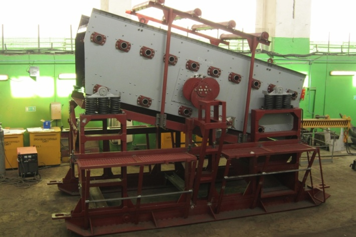 ❷ Модуль грохочения на базе инерционного грохота тяжелого типа ГИТ-52МБ с площадками обслуживания (тип просеивающих поверхностей указывает заказчик).