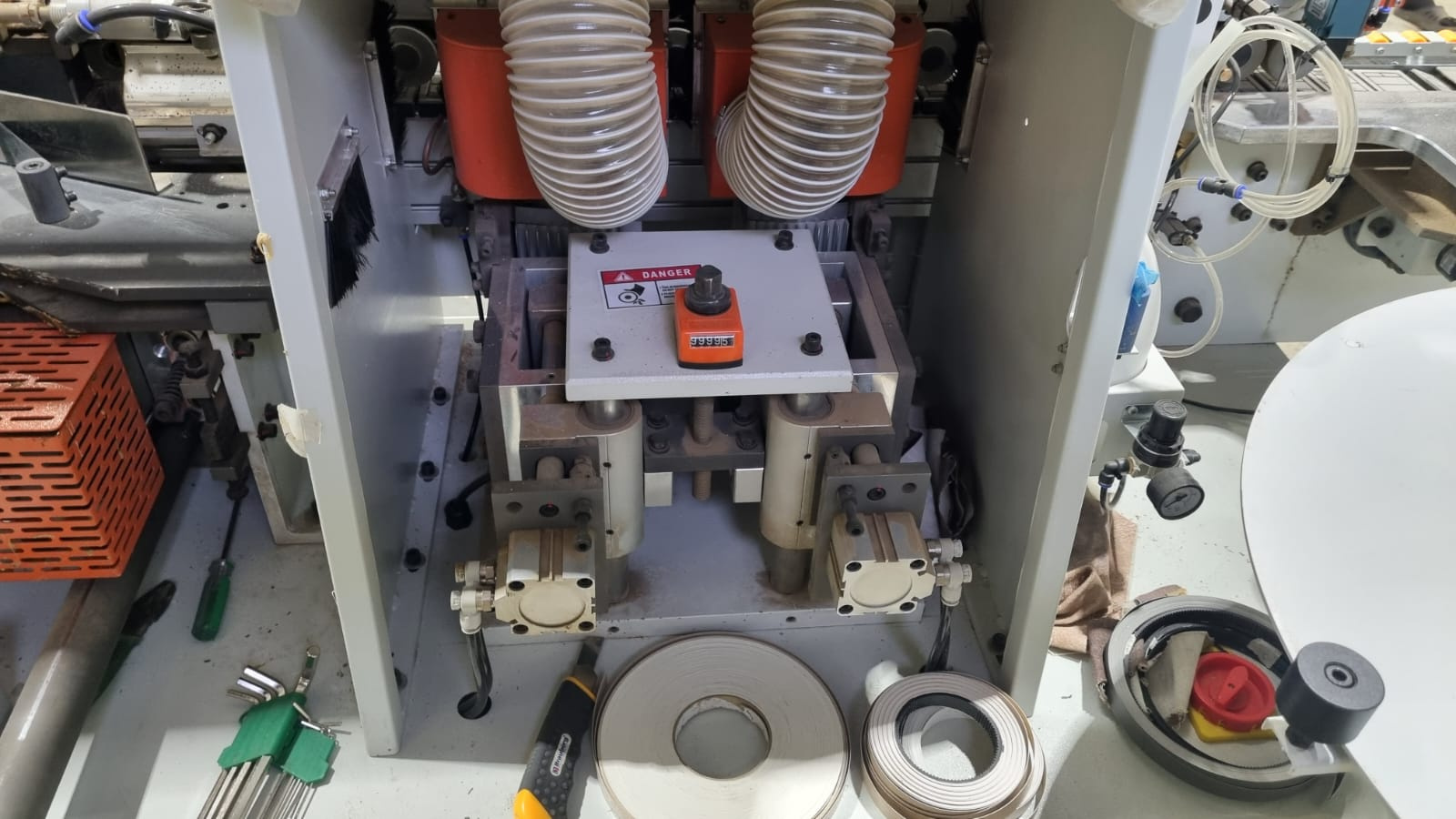 - Регулировка площадки прижимной группы на толщину кромочного материала осуществляется с помощью цифрового счетчика.
