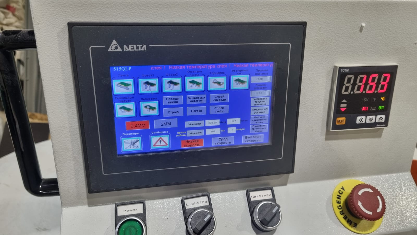 - Автоматическая перенастройка узла с помощью пневматики на 2 типа кромки.