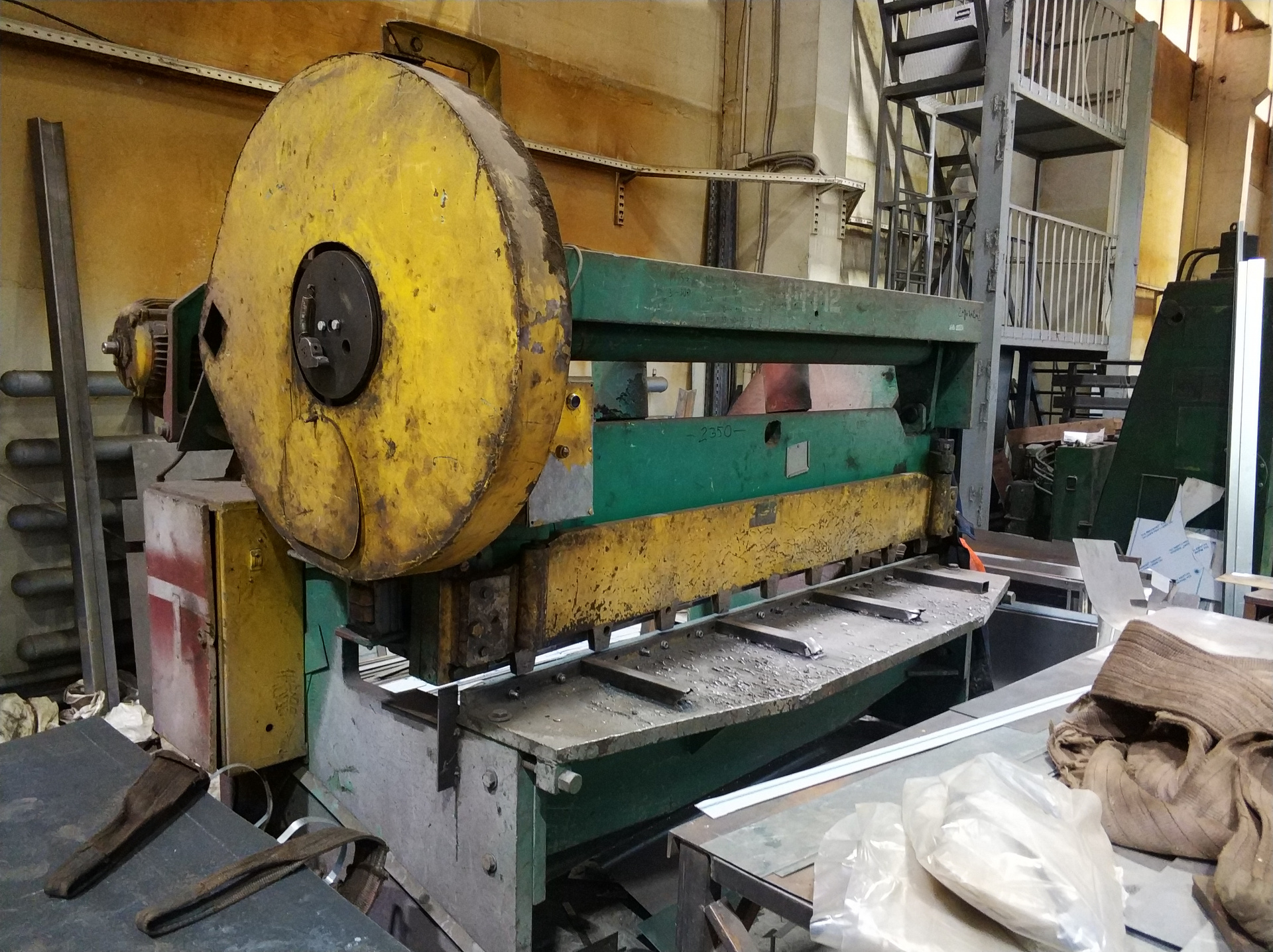 Ножницы гильотинные МГ 474, с наклонными ножами. Ширина руба 2350 мм.