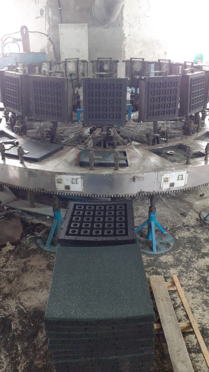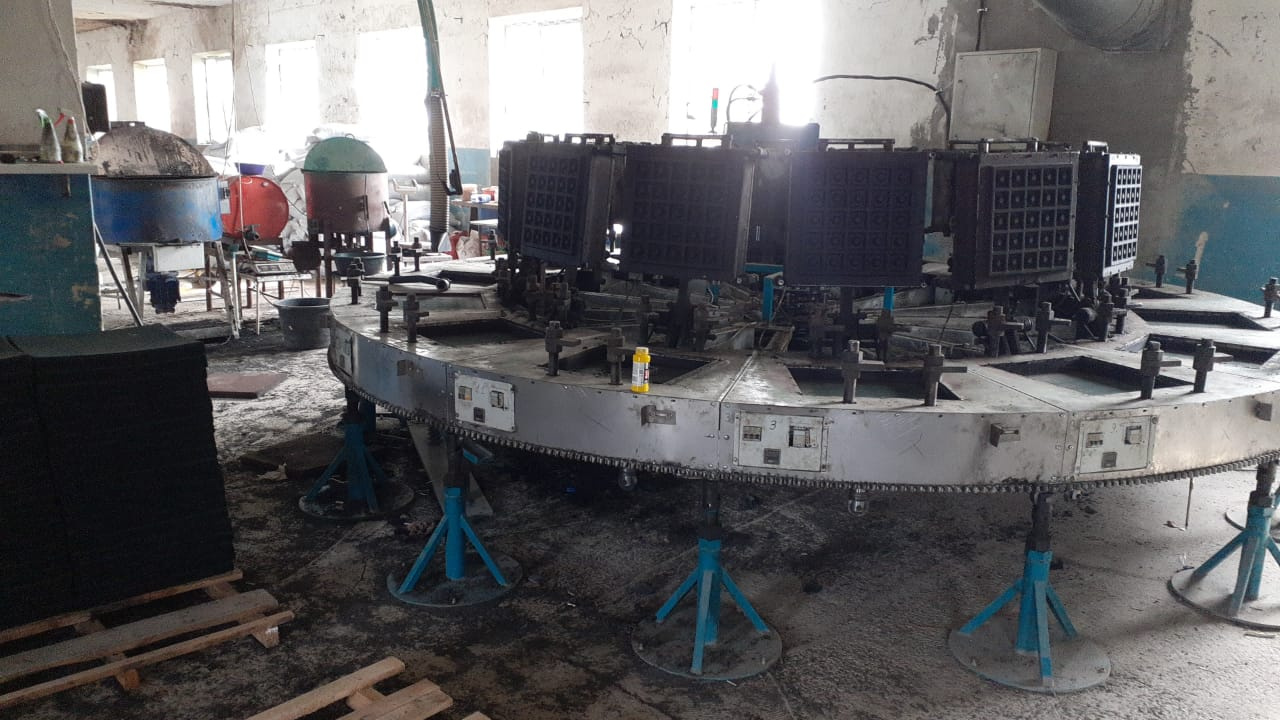 Продаю высокопроизводительную многопозиционную машину(адаптированную под 2 человека) карусельного типа для производства резиновых травмобезопасных напольных покрытий,(с технологией низкой себестоимости ) используемых на детских площадках,гаражах,дворах и т.д , 500*500*толщина от 10 до 50мм.Оборудование подключено, в работе.
