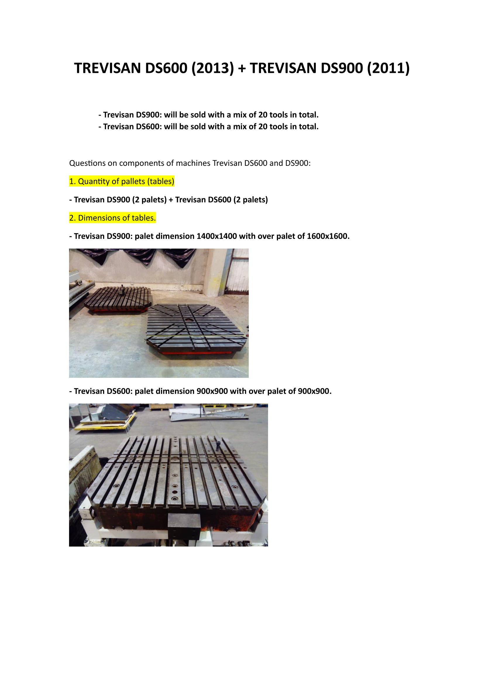 Предлагаем Итальянское оборудование в очень хорошем состоянии : Trevisan DS 600/200 C : 2011 года работал очень мало и Trevisan DS 900/300 C :2013 года тоже работал мало. Можем предоставить оригинальные запчасти от производителя с Италии если требуется к этим станкам и осуществить ревизию станка ( ревизия включена в цену) .Станки не имеют оперативной памяти в фрезерной головке. У DS900 -3720 часов работы, а у DS600 - 9279 часов.
