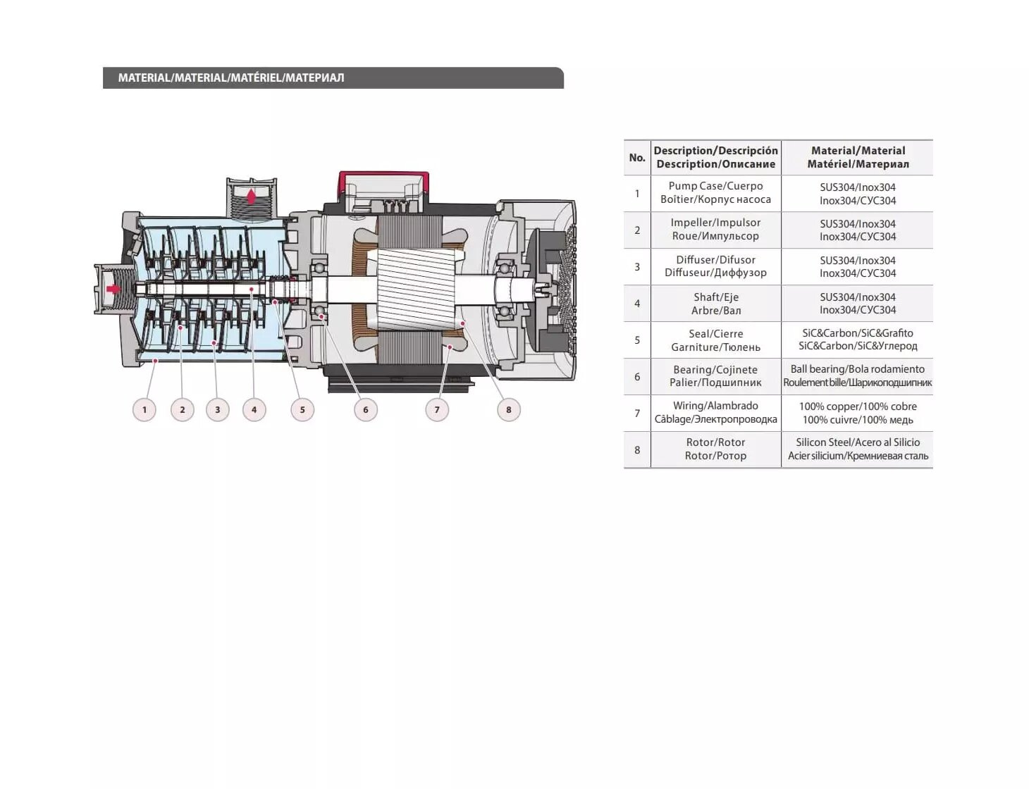 Тип конструкции насоса: многоступенчатые