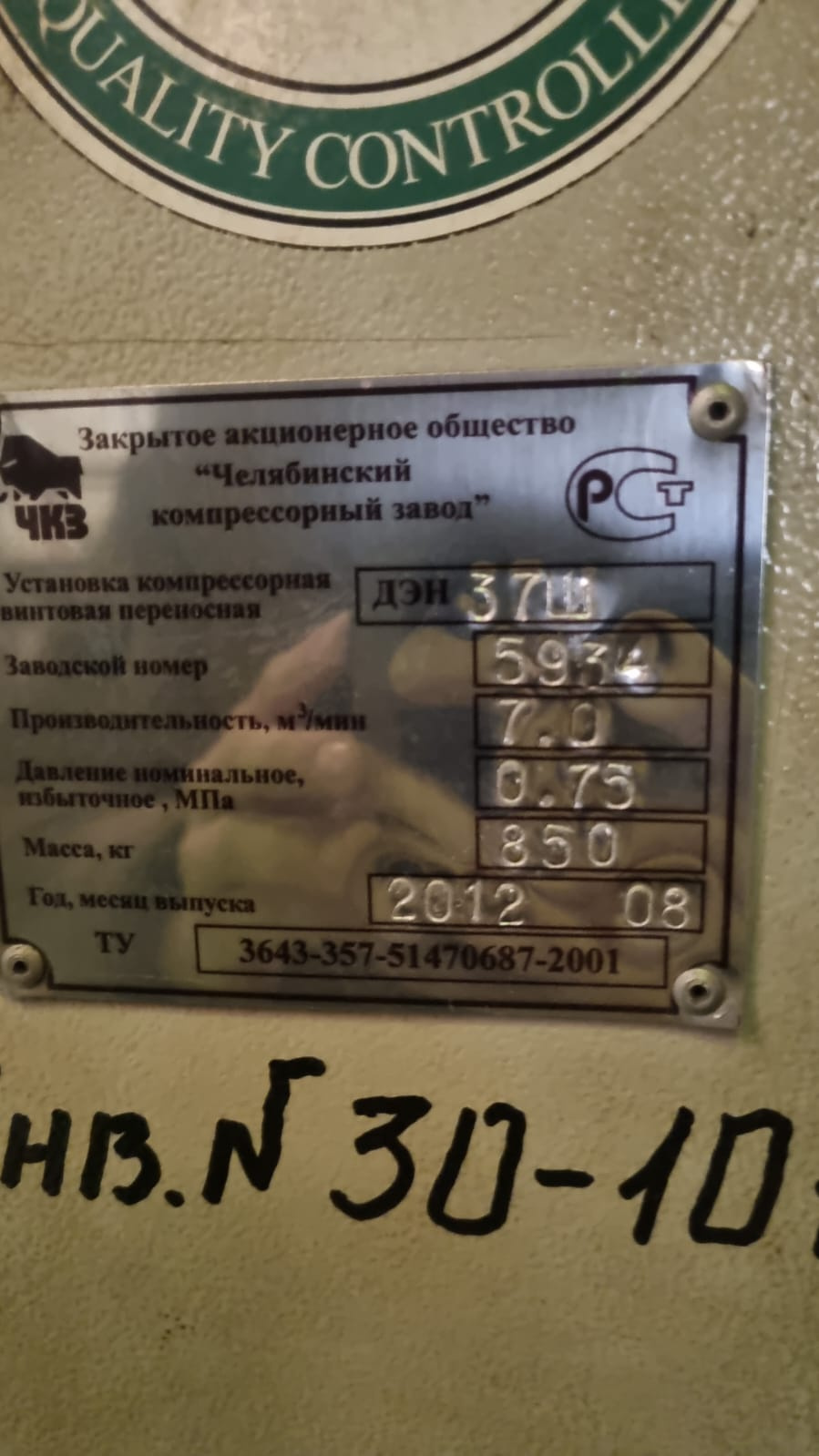 Компрессорная установка ДЭН-37Ш | 2012 | рабочая | ||
