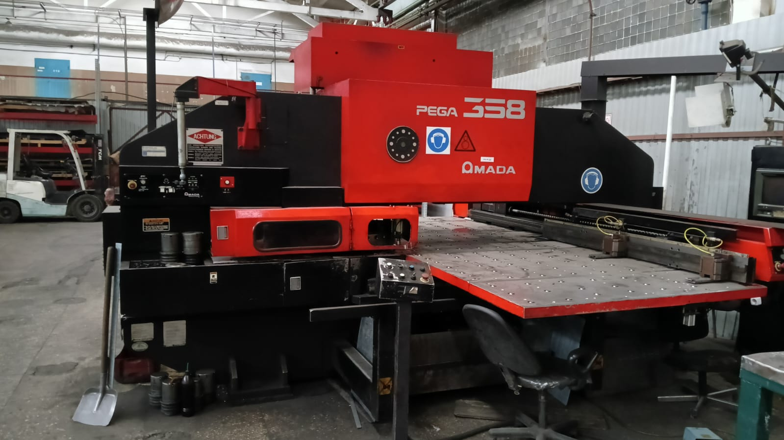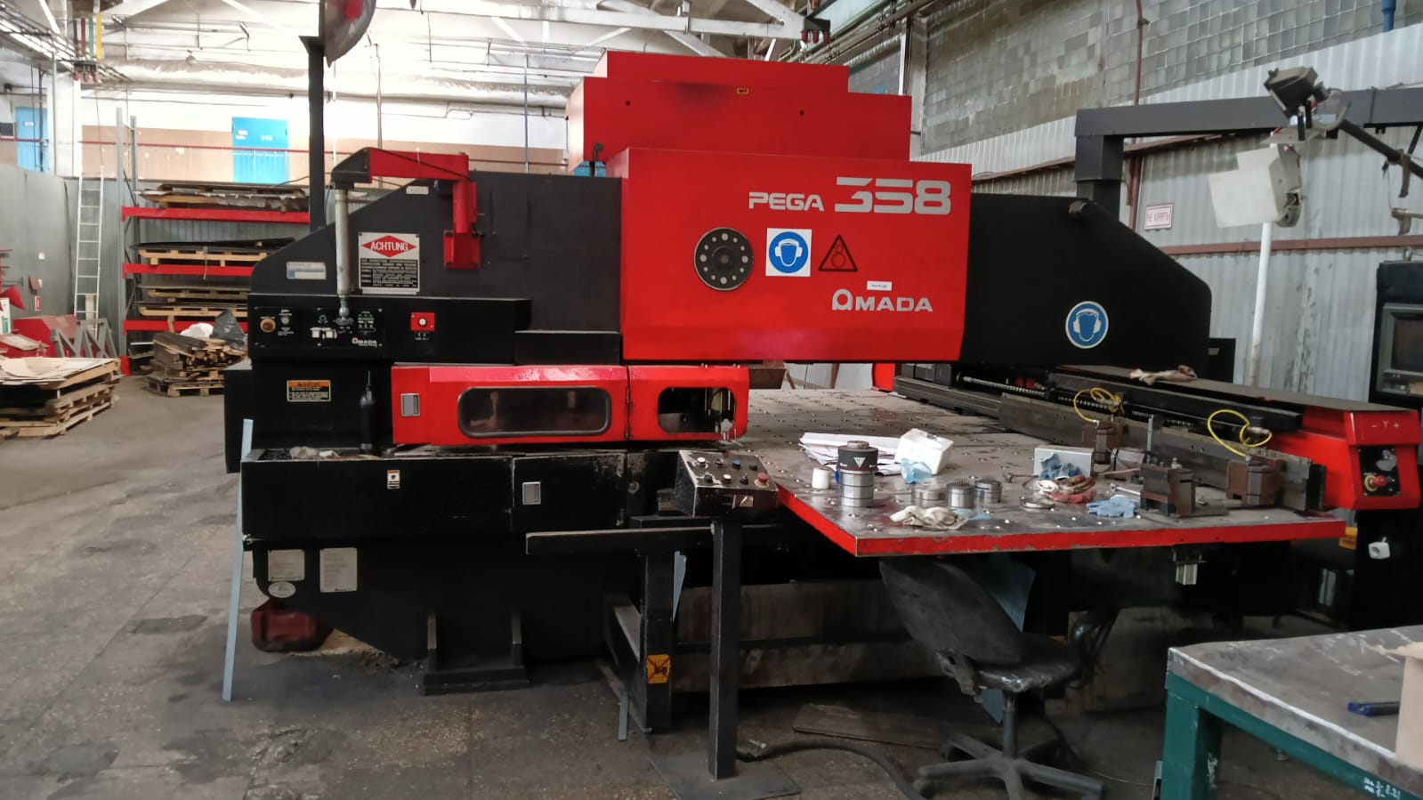 Координатно-пробивной пресс в рабочем и обслуженном состоянии AMADA PEGA 358.