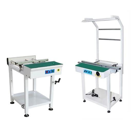 Конвейер прекрасно встраивается в линию поверхностного монтажа / линию SМТ-монтажа с автоматическим принтером для нанесения паяльной пасты, автоматическим установщиком для монтажа SМD-компонентов, печью оплавления припоя и другим конвейерным и инспекционным SМТ-оборудованием.