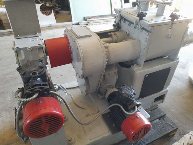 Смеситель представляют собой смешивающую машину, рабочими органами которой являются два горизонтально расположенных Z-образных лопастных валка, вращающихся в противоположные стороны, с различными скоростями, причем вращение валков - реверсивное.