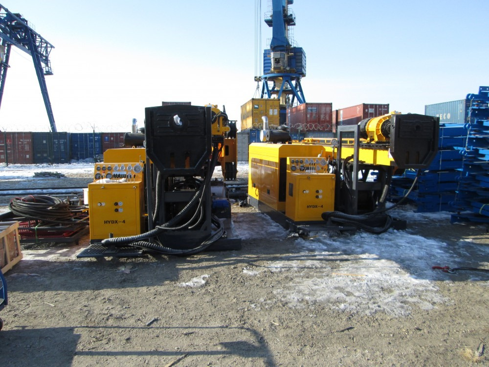 Гидравлические буровые установки используются в геологии, металлургии, для добычи и разведки залежей нефти, природного газа, угля, разработки подземных вод и др. Буровая установка HYDX-4 оснащена несколькими насосами, работающими от двигателя. Подача и подъем ротора происходит под действием прямого воздействия цилиндра, шаг 3,5м. Доступны четыре скоростных режима с механической системой переключения.