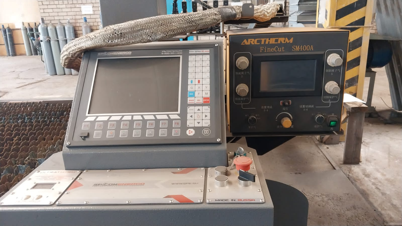 Продаем портальный станок плазменной и газовой резки металла с ЧПУ ULTRATHERM MTRP-2060, с управлением по 3-м осям (X, Y, Z), с рабочим полем 2100х6100 мм, для раскройной резки металла, высота перемещения по оси Z до 170 мм, автоматическая система контроля высоты реза "ТСН", портал станка с ЧПУ на основе высокоточных алюминиевых профилей (промышленный контроллер с ЧПУ SPM-10, с установленным программным обеспечением U-CUT, кнопки управления станком, русифицированный интерфейс контроллера, экран цветной LCD 10.4", передача данных осуществляется при помощи флеш-карты через USB-разъем, встроенная память контроллера 256 мб, встроенная библиотека изделий) с одним суппортом под крепление плазматрона, второй суппорт под крепление газового резака, питание портала 220В, 50Гц, потребляемая мощность 0,5 кВт, мощная рама станка с установленными на конструкционном алюминиевом анодированном профиле линейными направляющими "HIWIN" зубчатой рейкой, раскроечный стол в исполнении "MAXI", источник Arctherm SM 400A производства КНР. Год изготовления станка 2022. В работе был не более 1 месяца. Возможен торг.