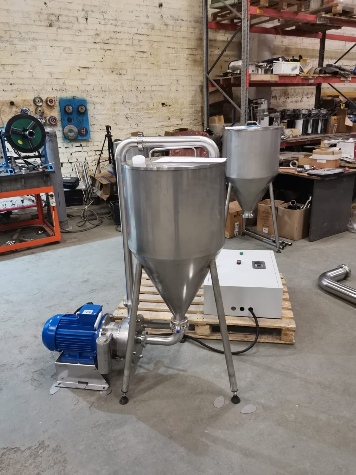 Изготовим бункер под ваши размеры, так же возможно исполнение и на 150 и 200 литров. Дополнительно, комплектуем установку пультом управления, который включает в себя преобразователь частоты, автотмат, контактор, а так же защиту от пыли и влаги.