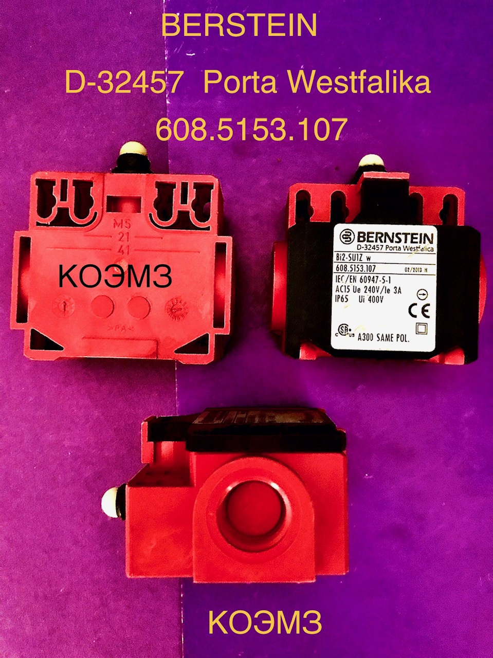 КОЭМЗ продает: Концевой выключатель BERNSTEIN D-32457 Porta Westfalika, Bi2-SU1Z w, 608.5153.107, IEC/EN 60947-5-1, AC15 Ue 240V/Ie 3A, IP65, Ui 400V, A300 SAME POL.