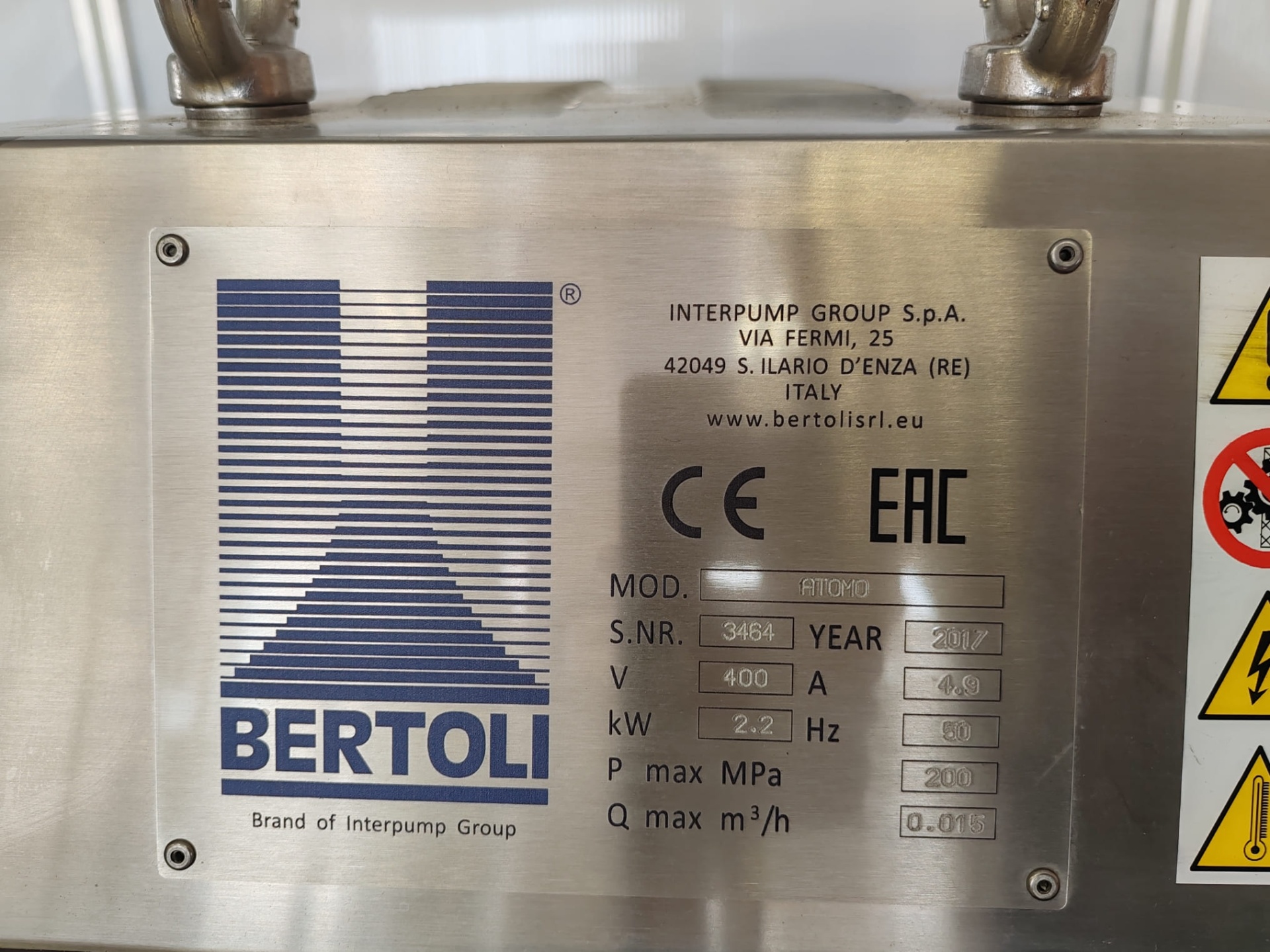 Гомогенизатор BERTOLI H3075, пр-ть до 10 куб/ч, инв 9257