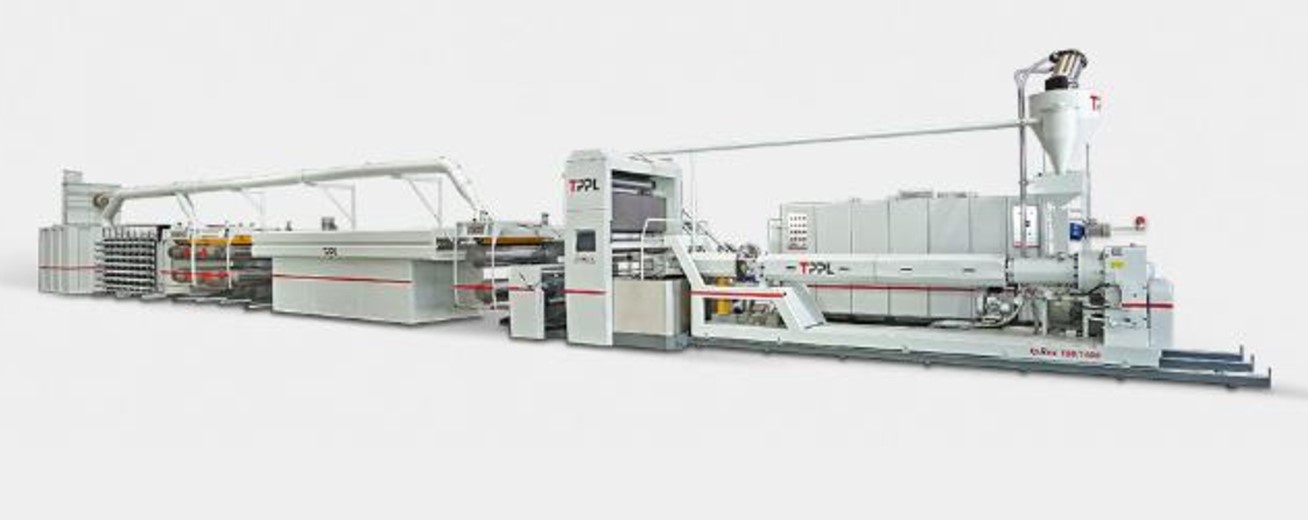 Экструзионная линия вытяжки нитей для производства полипропиленовой ткани.