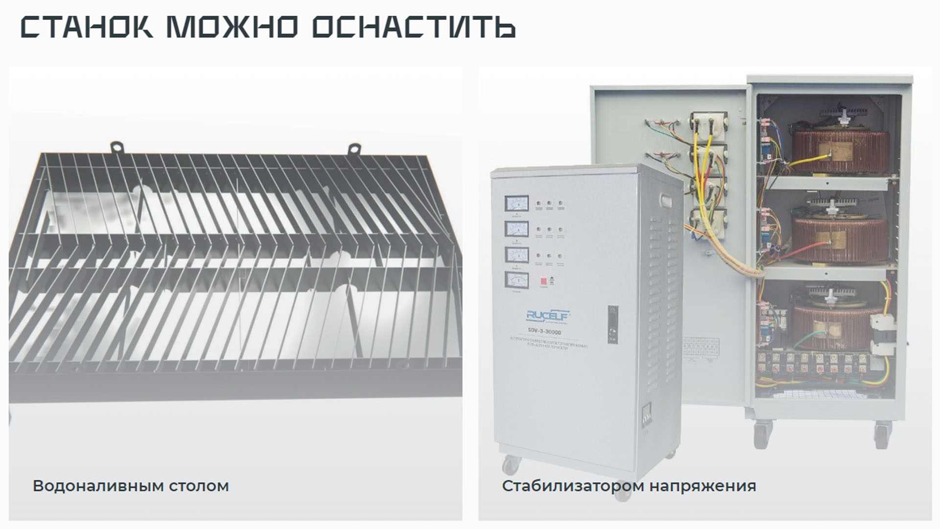 Оборудование оснащается воздушно-секционным столом с управлением от блока ЧПУ во время резки металла для оптимизации дымоудаления, охлаждения разрезаемого металла и предотвращения деформаций.