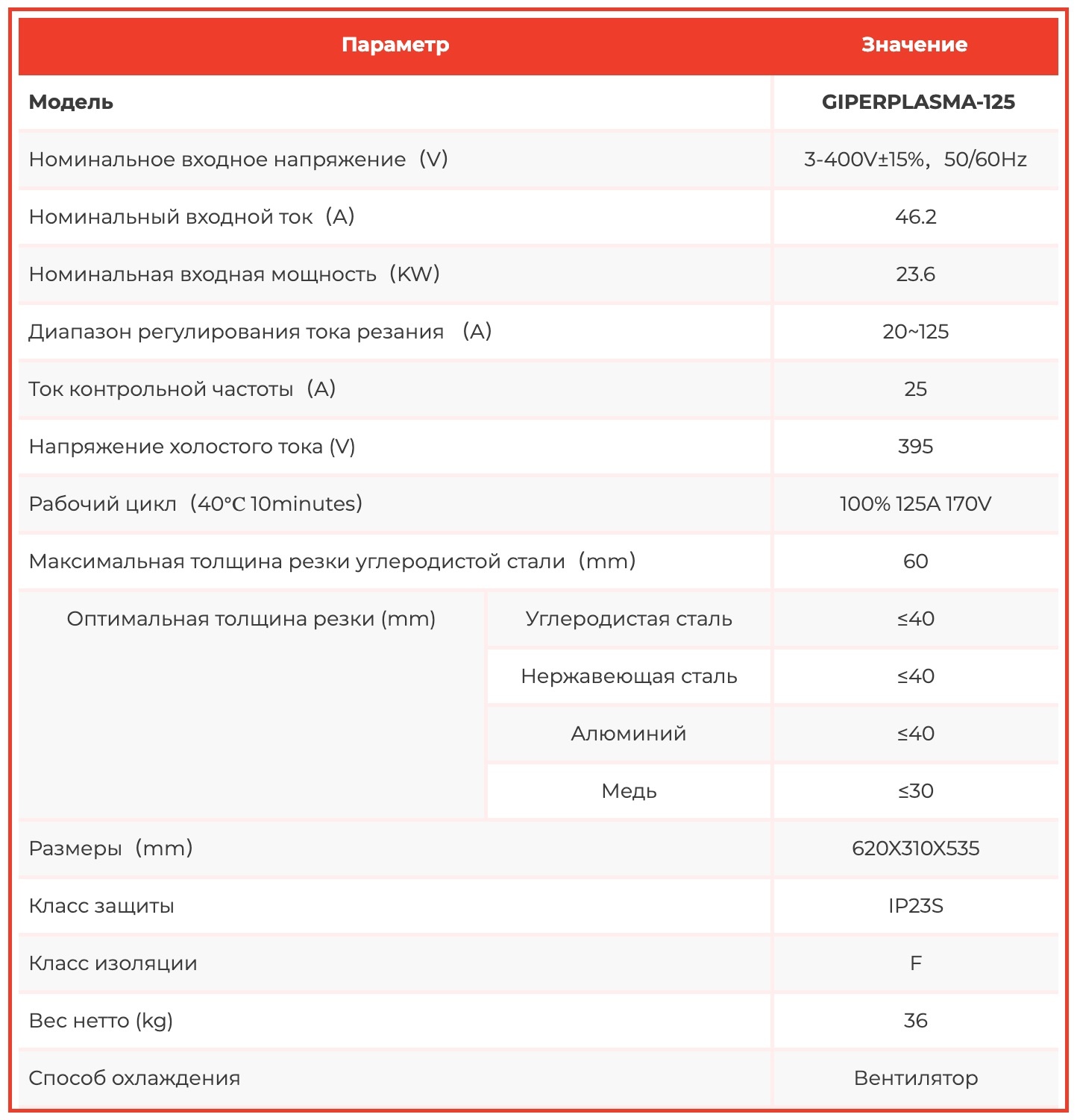 GIPERPLASMA 125 – представляет собой мощную и эффективную систему воздушной плазменной резки с ручным резаком 12 метров. Аппарат имеет высокую способность прожига и достигает отличных характеристик реза.