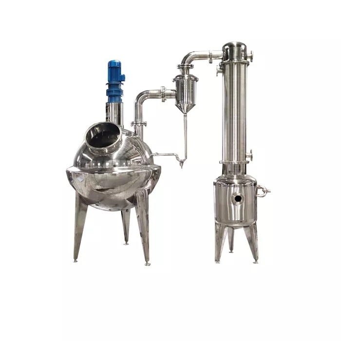 - Испарительная камера: Сферический резервуар общим объемом 383 л и эффективным объемом 200 л. Использует рубашку для теплообмена и площадь теплообмена 1.25 м2 (внутренний диаметр сферы 900 мм)