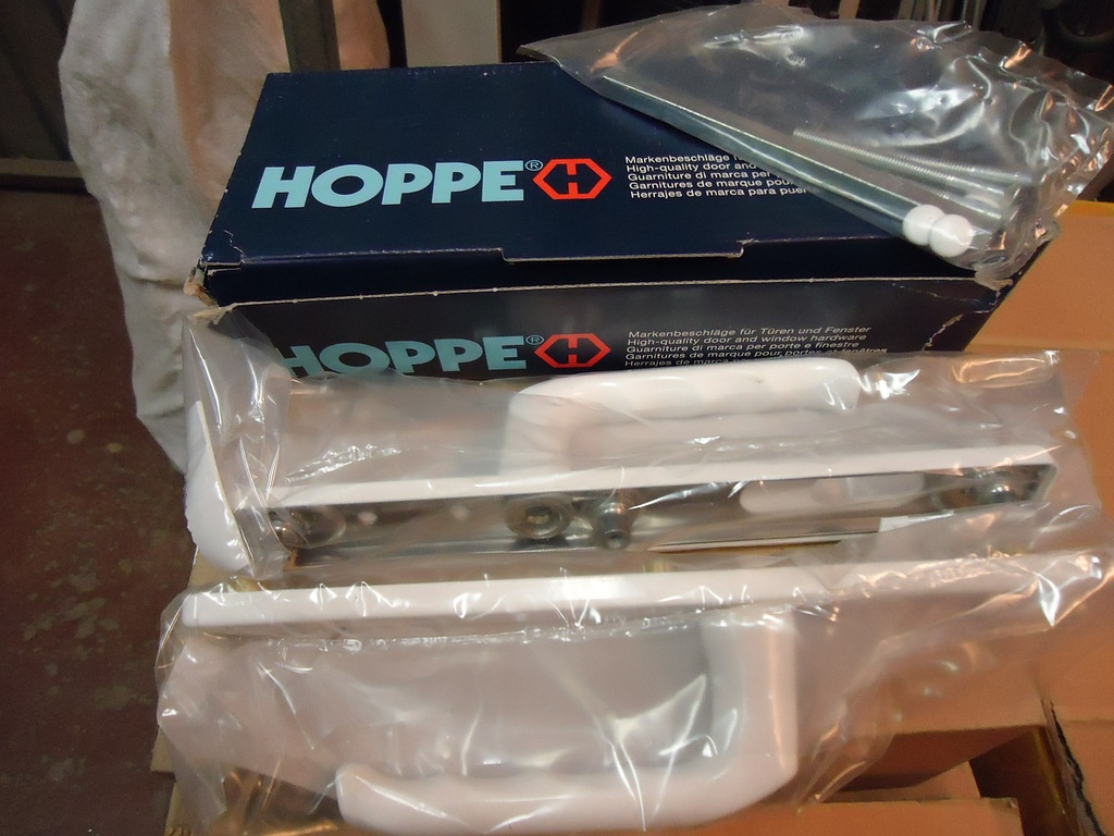 Гарнитур нажимной HOPPE(белый,бел+кор.) м/о 92мм, шир. проф. 57-62мм. - по 1000 руб/шт.(8 шт. +3шт.)