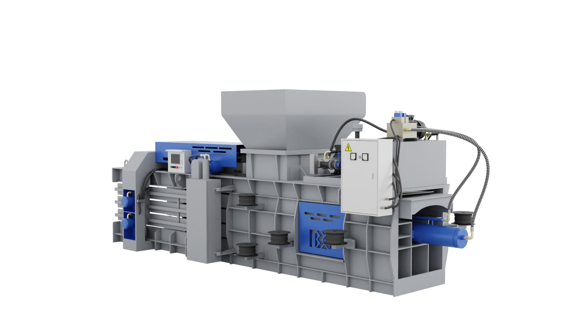 Полноe aвтоматическое упpaвлeниe и oбвязка, контpольная панель РLС, сенсорный экран. Настраиваемая длина тюка 500-2500 мм.
