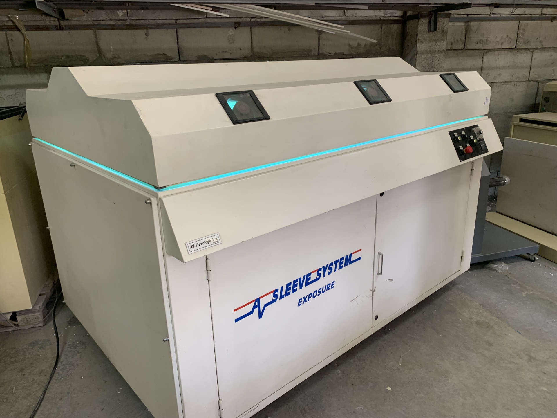 Оборудование для изготовления фотополимерных печатных форм, б.у., в хорошем состоянии Dupont Cyrel' Exposer, type 1001E – засветочное устройство 900х1200 Назначение: Оборудование предназначено для экспонирования фотополимерных печатных форм макс. Размером 900 мм х 1200 мм. Электропитание 400 В, 50 Гц, 3 фазы;6,5 А ; 4,2 к Вт AV Flexologic 1200 Back Exposer – засветочное устройство для обратной стороны пластины Назначение: Оборудование предназначено для экспонирования обратной стороны фотополимерных печатных форм макс. размером 107 cм х 155 cм. Лампы UVA:29 х 100 W Процессор BASF nyloflex Combi F- III 900 х 1200мм Процессор для проявки и сушки BASF nyloflex Combi F III c предварительной сушкой. Процессор предназначен для использования различных сольвентов типа: Solvit, Optisol, Flexosol и т.д. • Габариты (Д х В х Ш) 395 х 135 х 157 см • Вес 1400кг • Мощность 5 kW