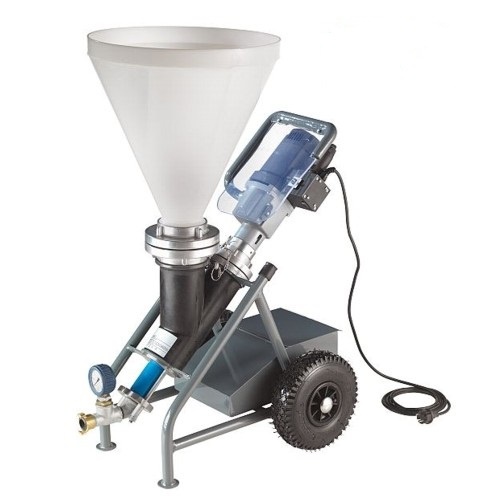 Компактный, легкий и очень надежный насос для подачи материала под давлением, инъектрования цемент-содержащими или жидкими материалами, например микроцементами или силикат-содержащими растворами с максимальным размером частиц до 3 мм. Насос также предназначен для нанесения методом набрызга битумных покрытий, минеральных и полимерных красок.