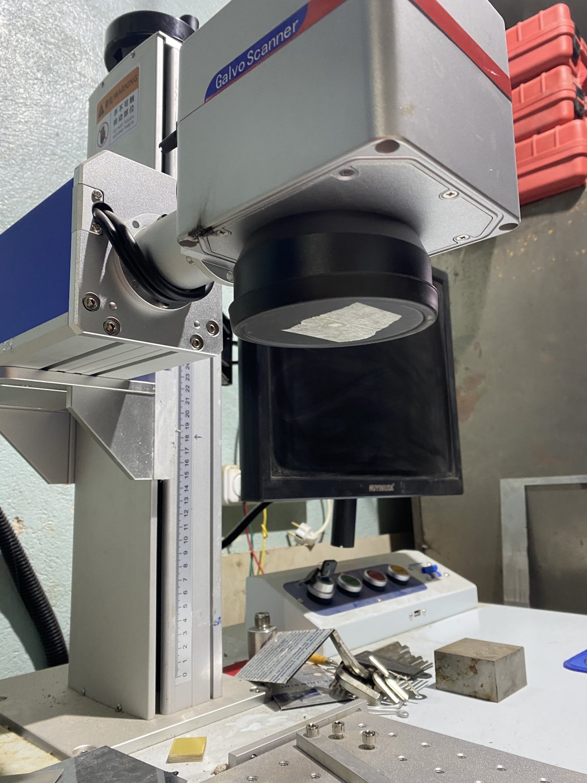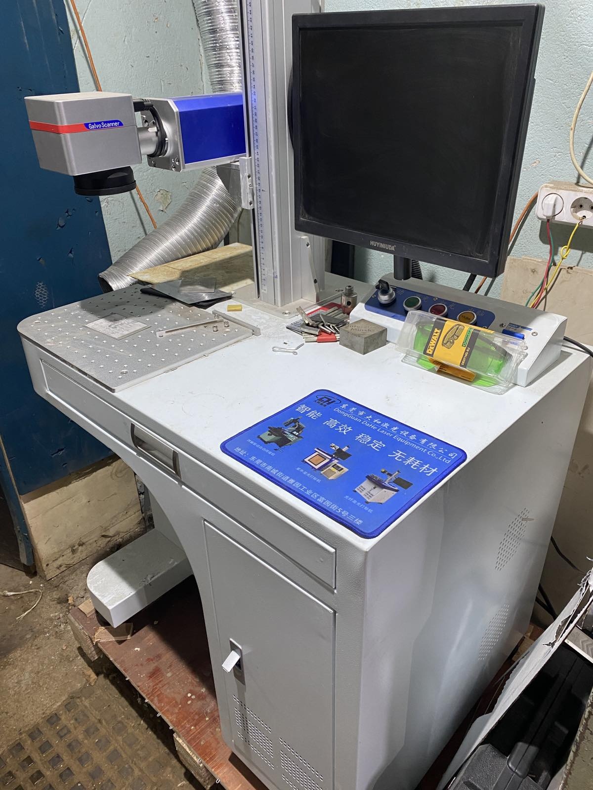 Станок для лазерной маркировки (модель DH-F). Работает с любыми плоскими материалами – металлом, пластиком, стеклом, керамикой и др. Рабочее поле 180*150мм. Состояние нового станка. Сделали только образцы.