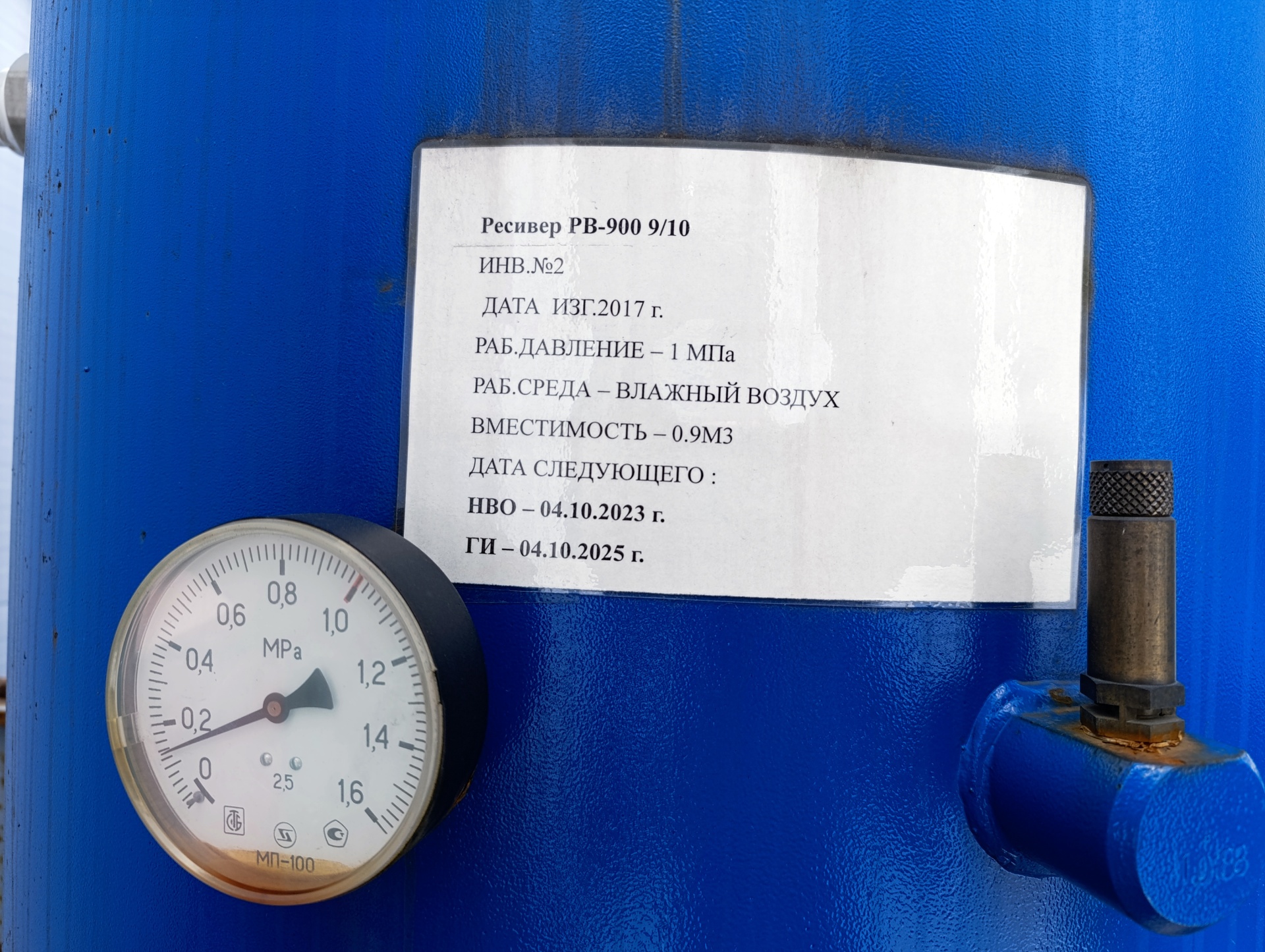 Рабочее давление 1 МПа