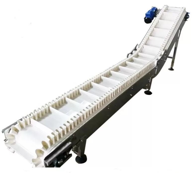 L-образный ленточный транспортер.L-образный конвейер – транспортер комбинированного типа, который состоит из трасс двух видов: горизонтальной (вверху или внизу) и наклонной. Горизонтальная трасса перемещает материал на заданное расстояние, а наклонная поднимает груз на установленную высоту. Конвейерная лента оборудована специальными гофрированными карманами и бортами, которые фиксируют груз в одном положении и не дают ему опрокинуться или просыпаться.