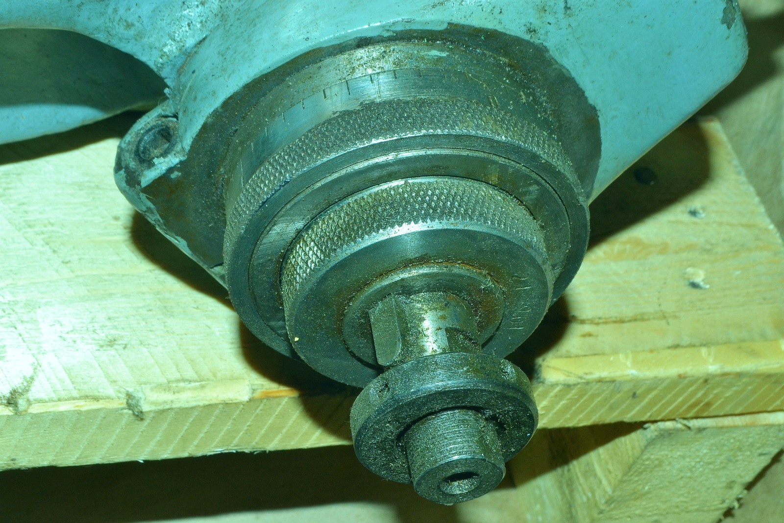 Из внешних недочетов влипшая пыль и всякие загрязнения на консерванте, небольшой скол на пластиковом шарике рукоятки редуктора; где-то посеялся штурвальчик для вращения стола обычный внутр.диаметр посадки 18 мм он отдельно прилагался (шпонка, гайка и отчетный лимб все на месте); сколы краски. По состоянию абсолютно новый. Требуется расконсервация, очистка, шприцевание масленок, первоначальный пуск и приработка.
