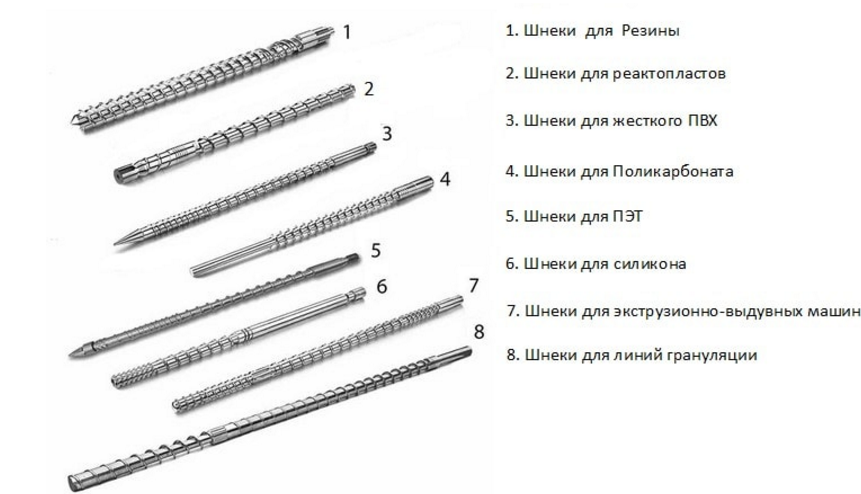 К Элемент предлагает изготовление шнеков и шнековых пар для одношнековых экструдеров ПЭ и ПП, экструдеров стрейч пленки, двухшнековых экструдеров для различных композиций ПВХ, термопластавтоматов, грануляторов. Шнеки под заказ с доставкой от 18 дней!