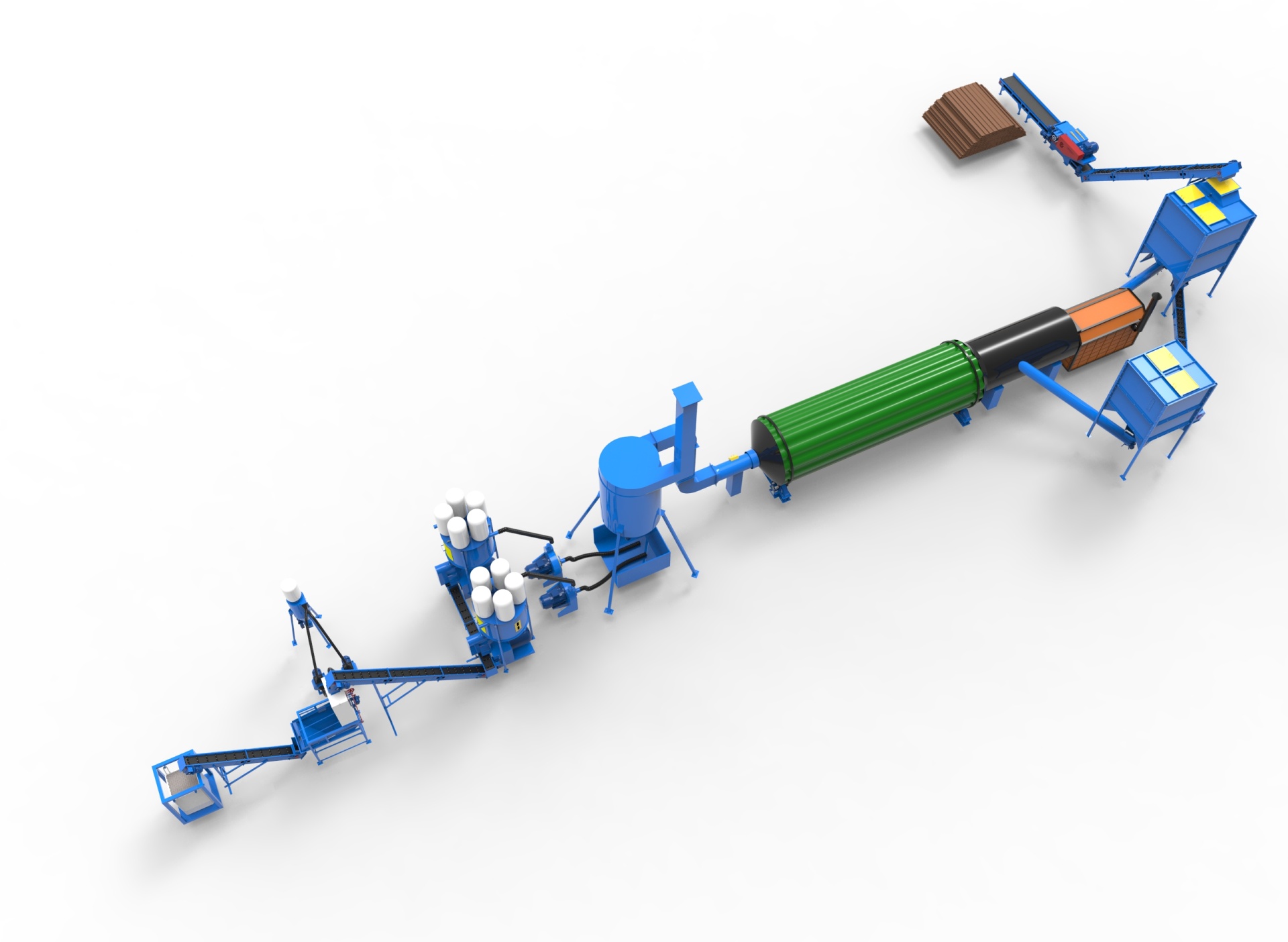 Опционно в комплектацию линии может быть включена сушильная установка, позволяющая перерабатывать сырье с влажностью вплоть до 55%, и фасовочно-упаковочный узел.