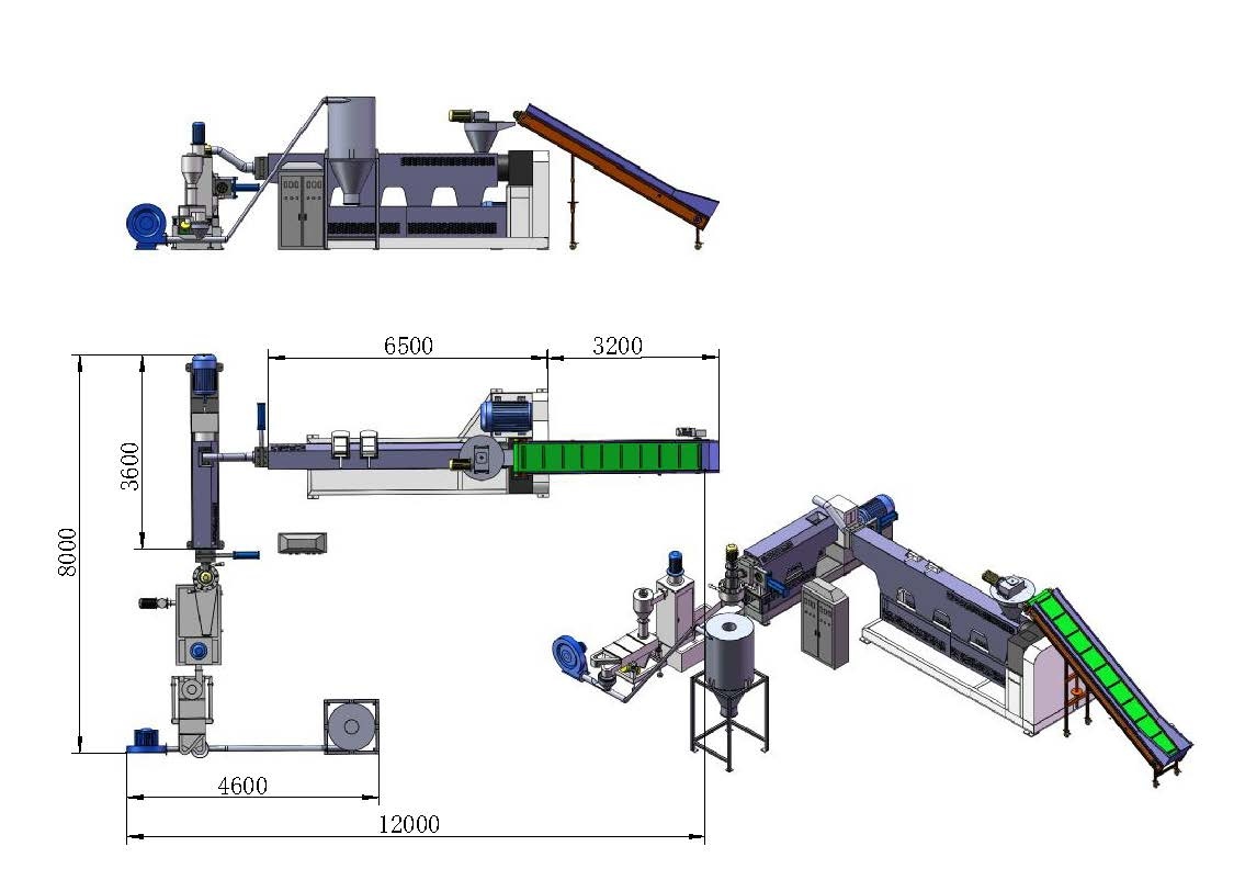 2 | РС1200 Дробилка пластика | 1. Мощность электродвигателя 75 кВт, переменное напряжение 2. Диаметр отверстий в сетке: для пленки диаметр 80 мм 3. Диаметр вращающегося основного барабана 710 мм. 4. Длина основного вращающегося барабана 1200 мм. 5. Размеры загрузочного бункера 1200 мм х 700 мм 6. Количество вращающихся ножей: 10 штук 7. Количество неподвижных ножей: 4 штуки. 8. Дробление с водой, подшипники охлаждаются водой. 9. Производительность >500 кг/ч 10. Дробилка работает с водой, подающейся разбрызгиванием от верхней части 11. Открывание сетки гидравлическое 12.Открывание загрузочного бункера гидравлическое 13. Материал ножей: D2. | 2 |