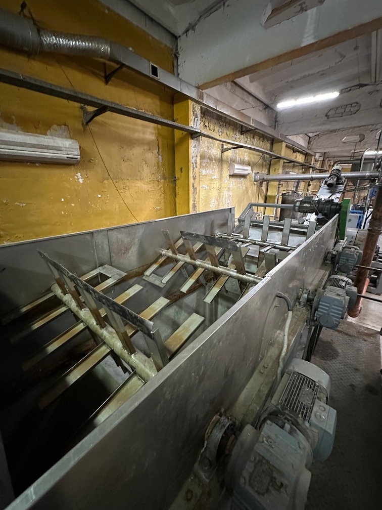 8 | Флотационная мойка с ременным конвейером выгрузки | 1. Рабочая длина : 6000 мм, Ширина 1500 мм 2. Моторы привода моющих валов: 1,5 кВт, 4 штуки 3. Количество моющих валов: 4 штуки 4. Регулировка скорости приводных валов: с помощью частотного преобразователя 5. Материал, контактирующий с продуктом — нержавеющая сталь 304 6. Моющий танк имеет устройства автоматического поддержания уровня воды 7. Нижняя часть танка выполнена конической для более легкого удаления осадка со дна 8. Способ удаления осадка: две шиберные задвижки с пневмоуправлением и камерой между ними, позволяющие удалять грязный осадок порциями 9. Вторая шиберная задвижка с пневмоуправлением установлена через 90 градусный отвод 10. Высота от края второй шиберной задвижки с пневмоуправлением : 300 мм 11. Ванна мойки имеет защитные крышки 12. Конвейер выгрузки позволяет удалять кусочки плавающего пластика из танка. Его рабочая длина : 1500 мм, Ширина 1500 мм 13. Конвейер выгрузки имеет привод мощностью 2,2 кВт. Материал, контактирующий с продуктом — нержавеющая сталь 304 | 1 |