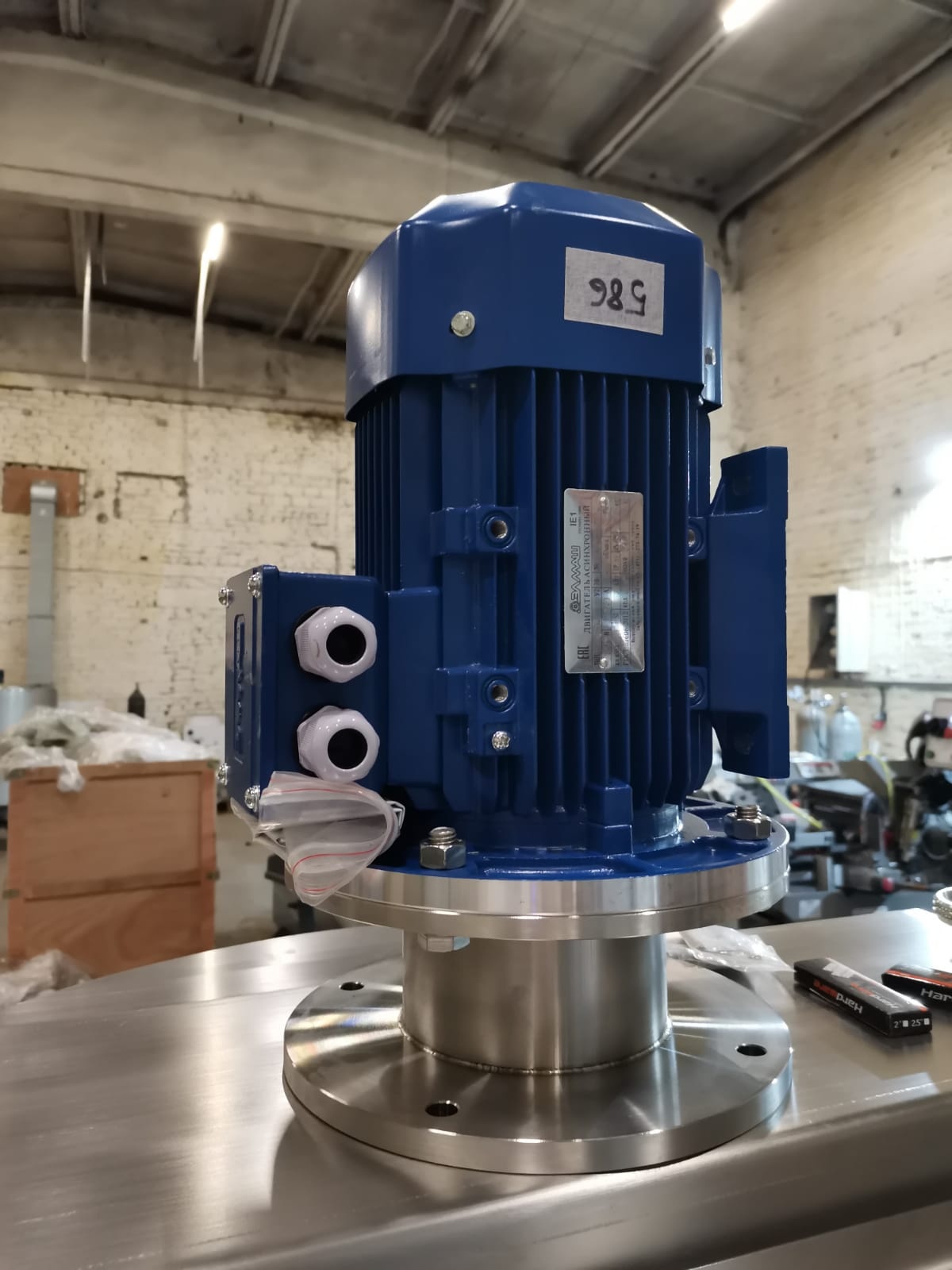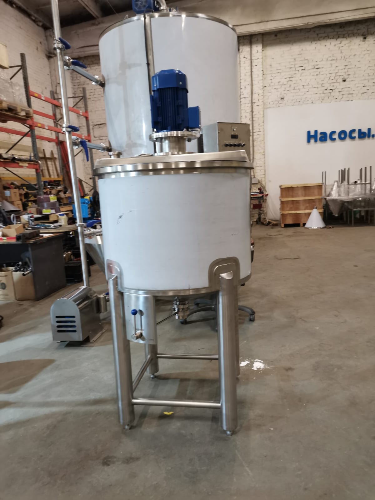 Однослойная емкость из нержавеющей стали с фрезой, мощностью 3 кВт, предназначенная для приведения смеси к однородной консистенции.
