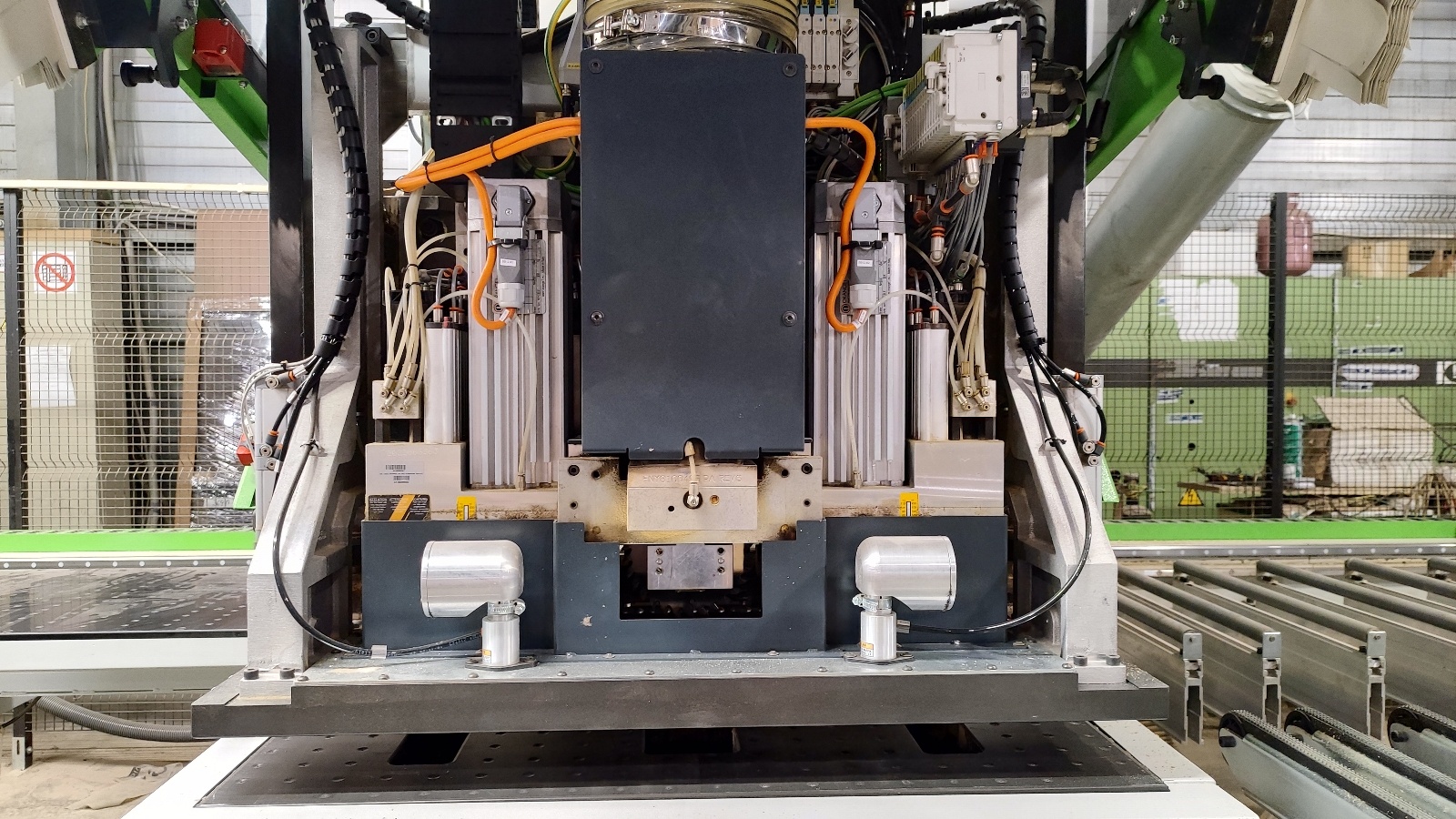 Станок оборудован двумя рабочими присадочными группами – нижней и верхней, имеющими в общей сложности 78 автономных инструментальных шпинделей (39 – на верхней и 39 – на нижней рабочей группе).