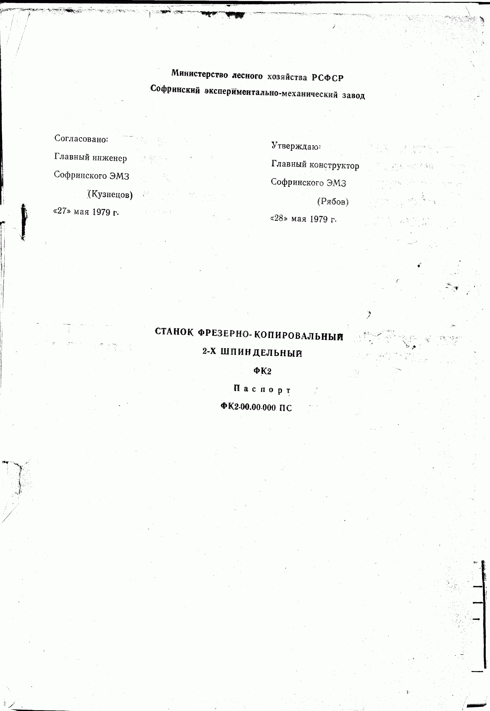 Продам паспорт на фрезерно-копировальный 2-х шпиндельный станок ФК-2: