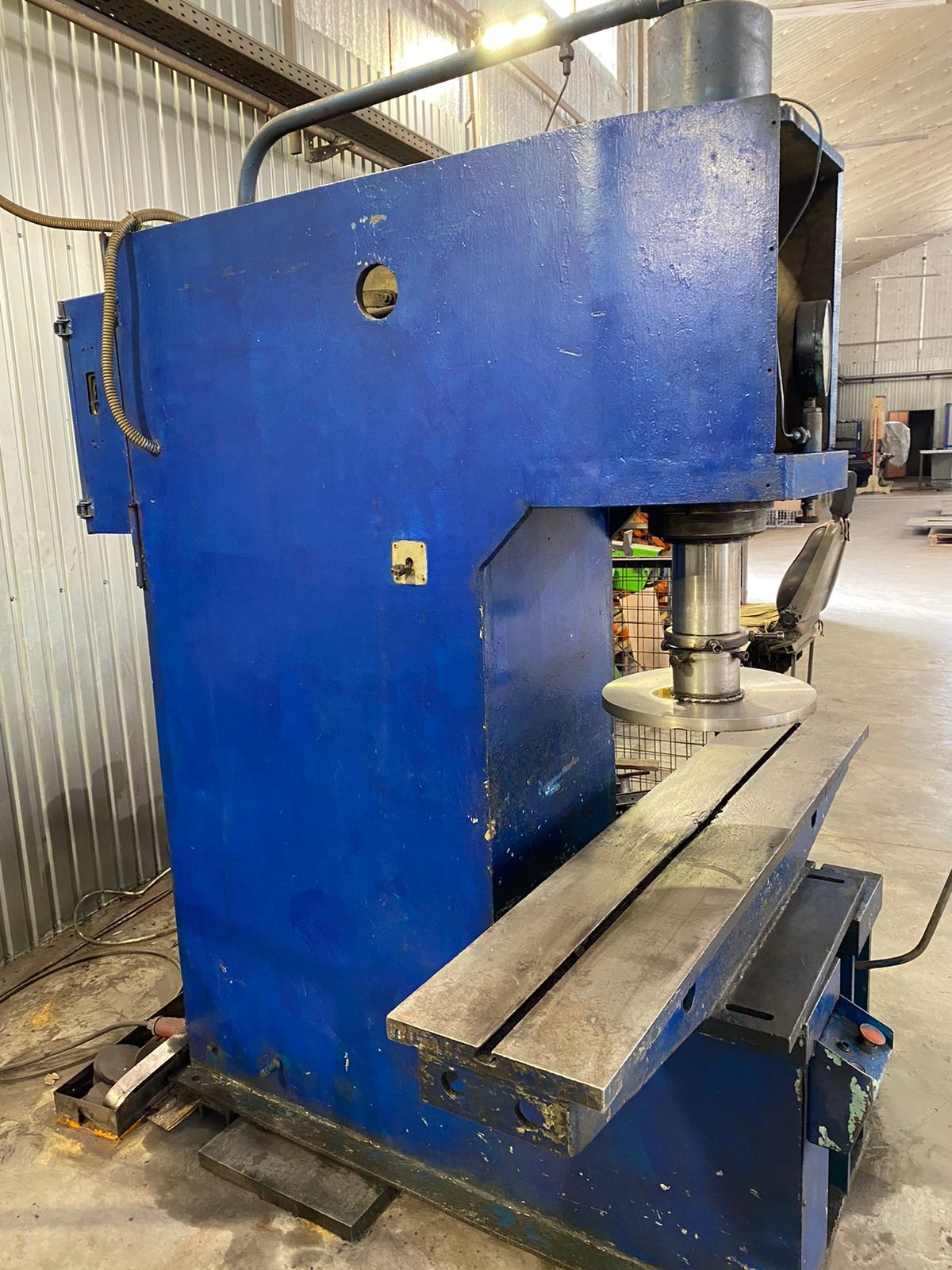 Номинальное усилие пресса, кН: 400 Наибольший ход ползуна, мм: 500 Расстояние от оси штока до станины (вылет), мм: 320 Мощность привода, кВт:13 Габариты (ДхШхВ), мм: 950х1770х280 Масса,кг: 2950