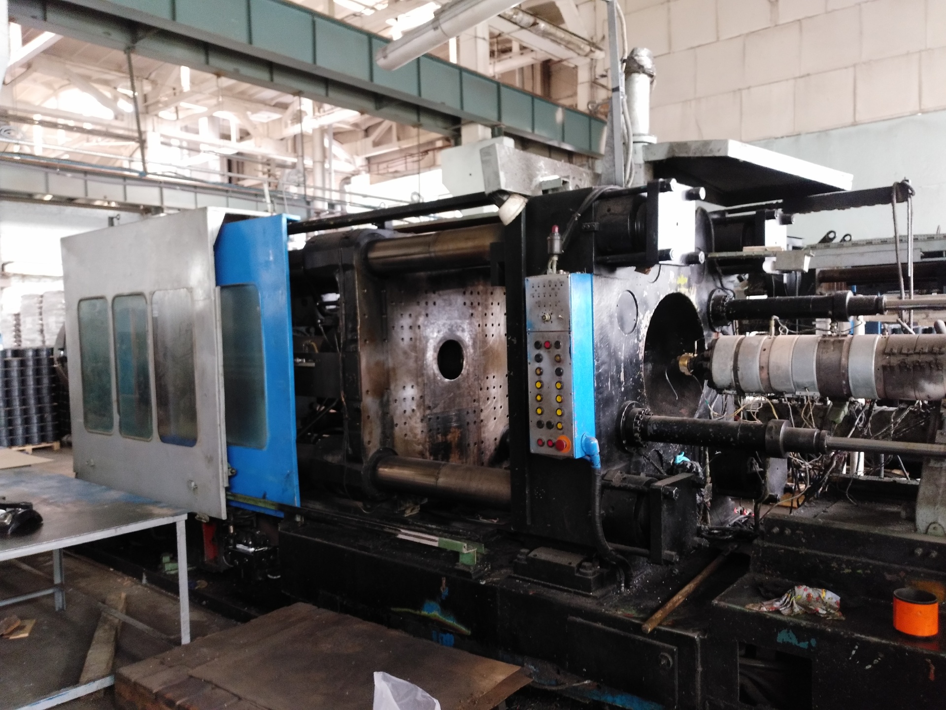 Рассчетный объем впрыска, см³: 5000 Давление впрыска, МПа: 170 Скорость вращения шнека, об/мин: 40-120 Диаметр материального шнека, мм: 125 Мощность ТЭН материального цилиндра, кВт: 36 Суммарная установленная мощьность, кВт: 126 Сила смыкания плит, кН: 10000 Макс. высота прессформы, мм: 1000 Мин. высота прессформы, мм: 500 Мощность двигателя насоса, кВт: 90 Габариты (ДхШхВ), мм: 10870х2700х 3090 Масса: 46000кг.